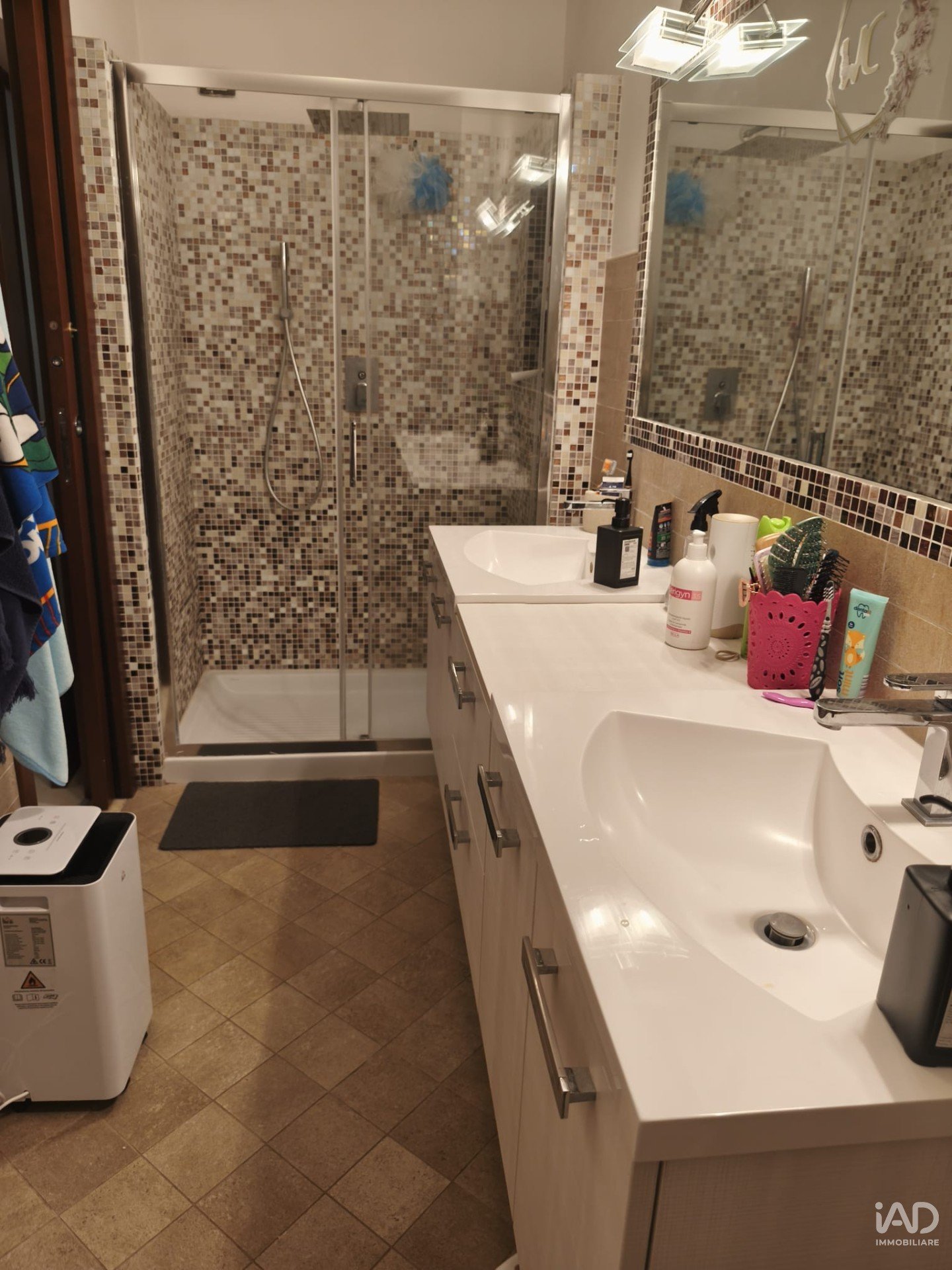 La zona notte è composta da un disimpegno, una camera matrimoniale, una seconda camera doppia e un bagno finestrato di grande eleganza, dotato di ampia doccia, doppio lavabo e finiture di qualità.