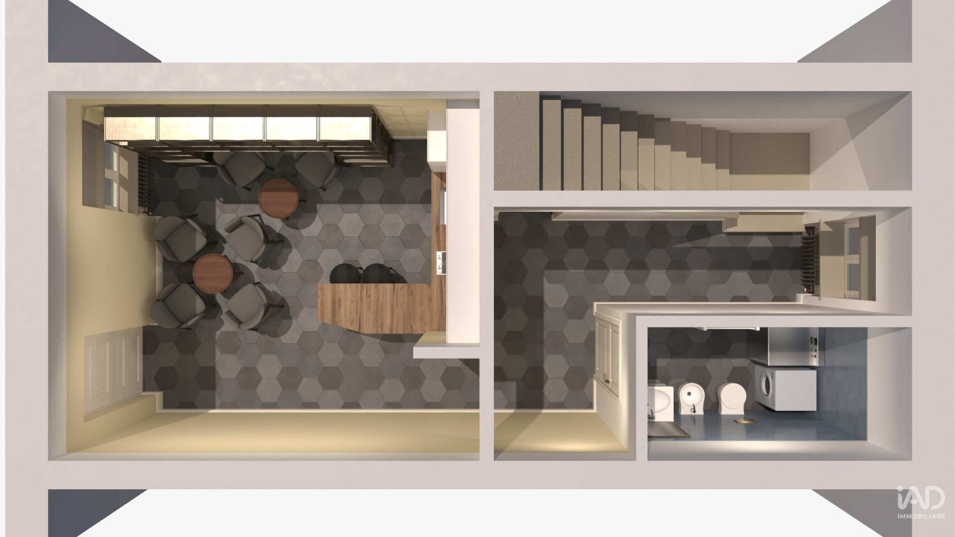 soggiorno e bagno al piano terra