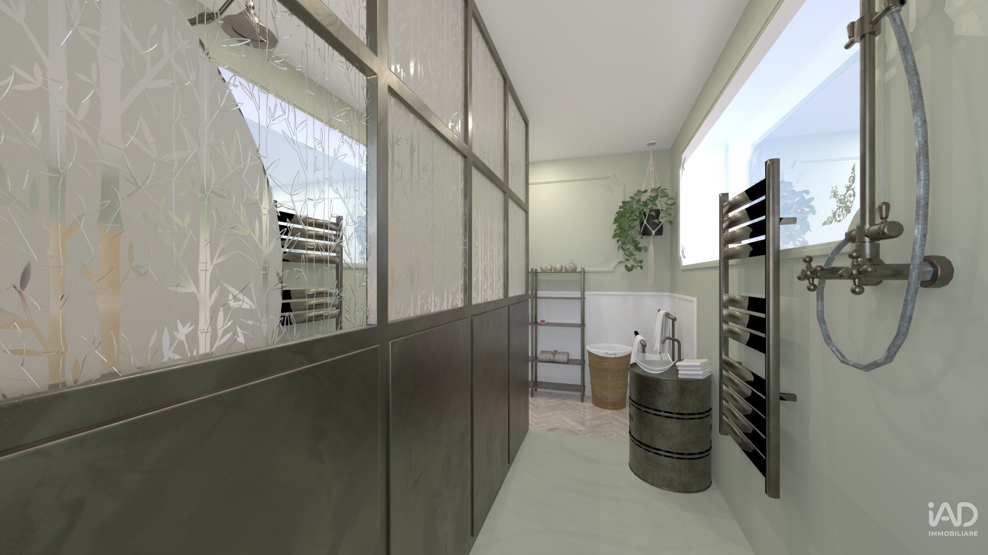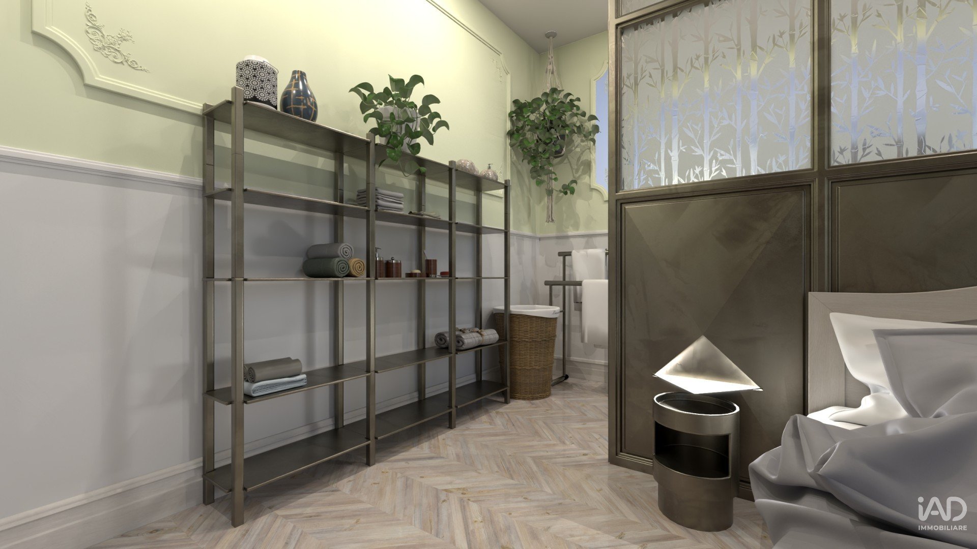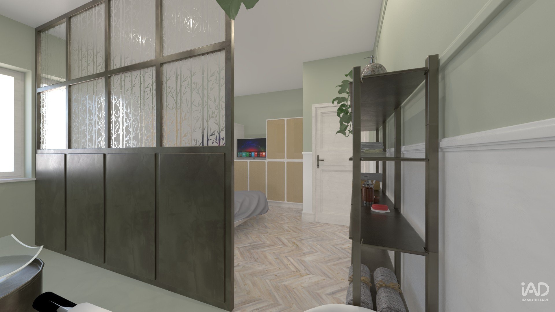 nuance sabbia, tortora e verde salvia si fondono con inserti in vetro satinato, metallo scuro e legno naturale, dando vita a spazi luminosi e accoglienti.