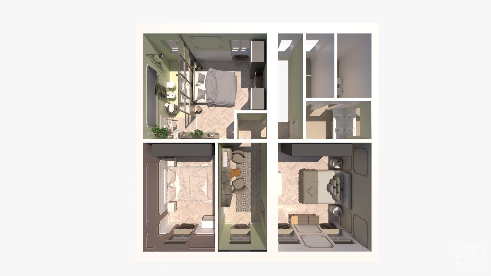 zona notte con 3 camere matrimoniali e 3 bagni al piano secondo