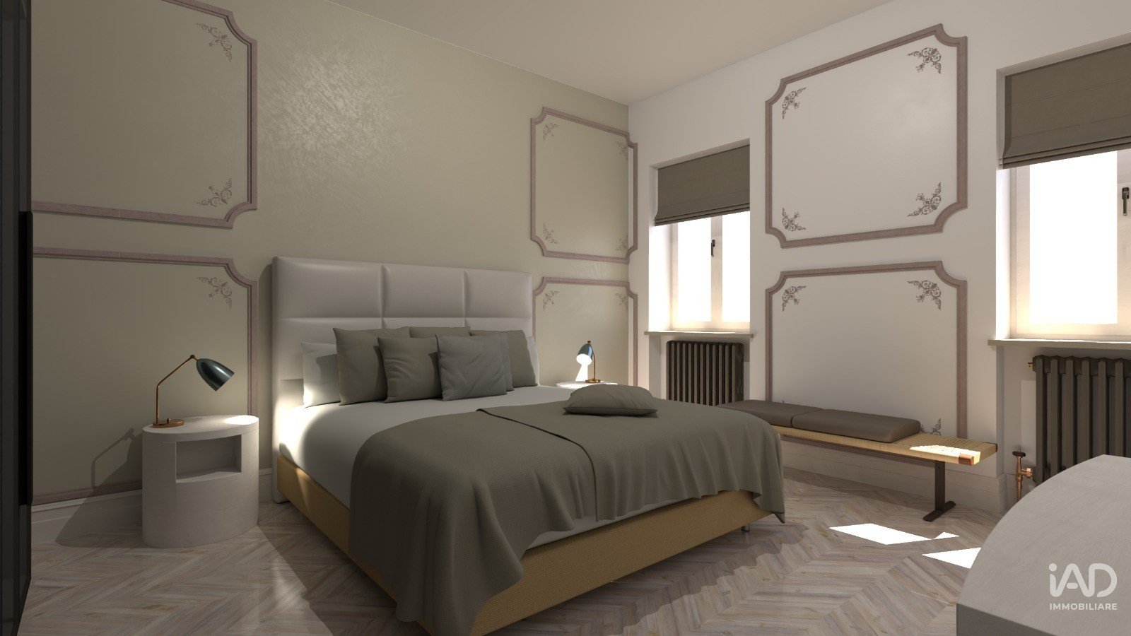Piazza Roma n.8 valorizza elementi tipici dell’architettura tradizionale - cornici decorative, boiserie e volumi equilibrati - reinterpretandoli con materiali attuali,