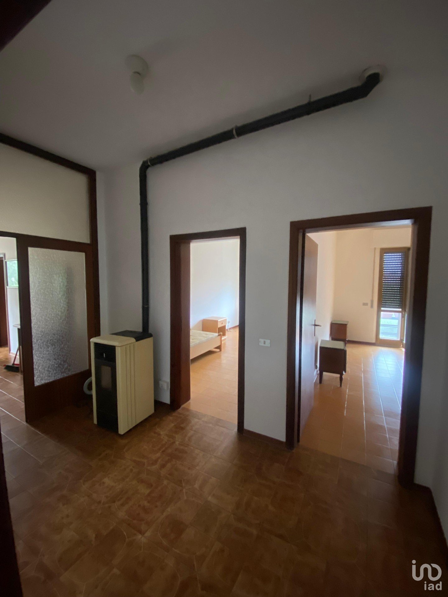L’accesso all’appartamento avviene tramite scala privata che conduce direttamente all'abitazione ed al giardino di proprietà. All’interno, un lungo corridoio distribuisce gli ambienti: troviamo un accogliente salotto, una sala da pranzo con adiacente cucinotto e, nella zona notte, tre camere da letto matrimoniali ed un bagno.