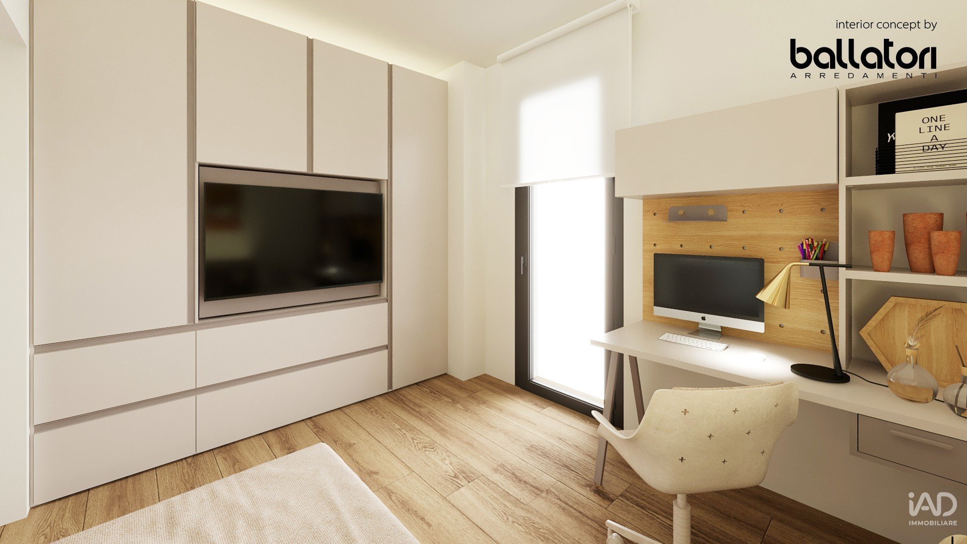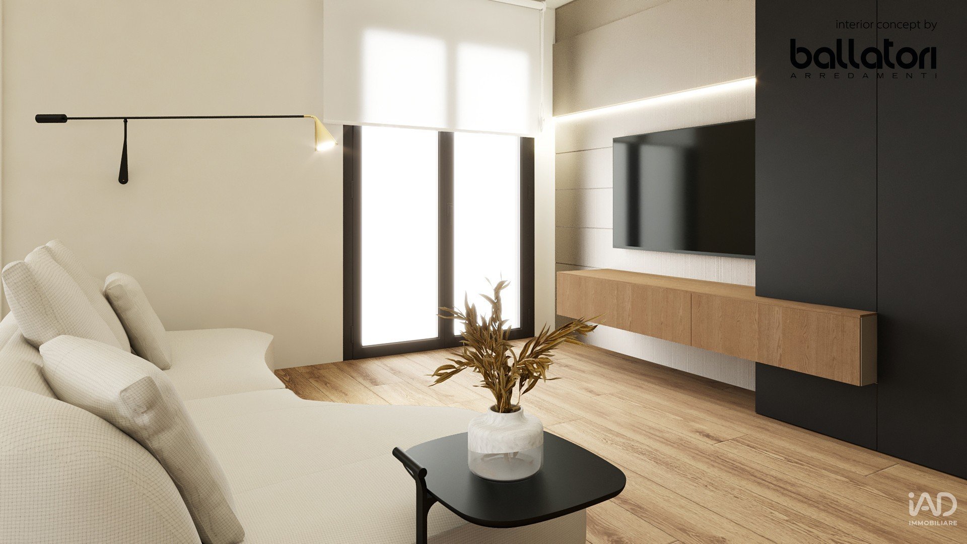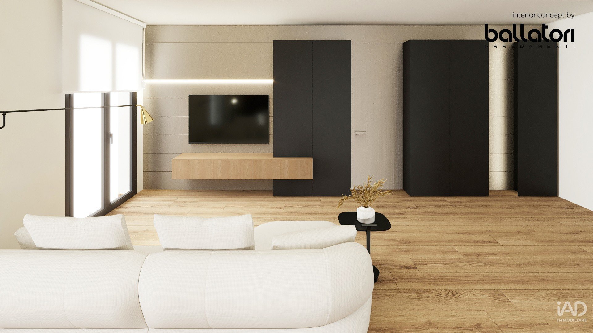 Finiture di alto livello: parquet rovere naturale, grandi porte filo-muro, armadiature su misura, illuminazione LED indiretta
