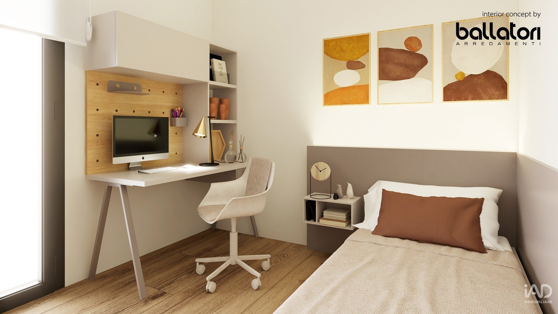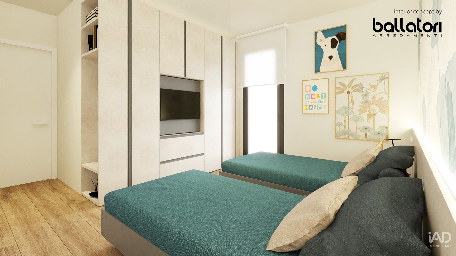 Il sole entra già forte dalle due grandi vetrate della camera matrimoniale, accende il parquet chiaro e ti arriva dritto sul cuscino. Non devi tirare su nessuna tapparella: la luce è lì, calda, dorata, quella luce di marzo che sa di estate vicina.