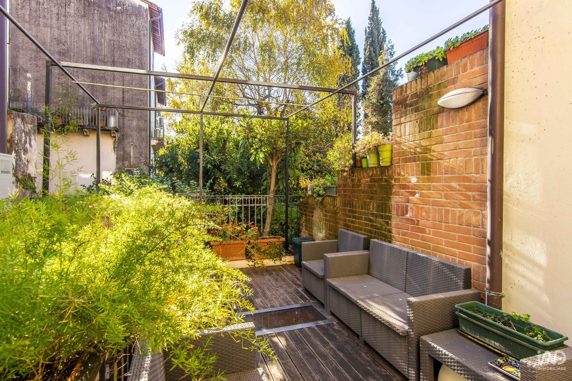 Un elegante ingresso separa l’ampia sala da pranzo, che dialoga con la cucina ed un primo spazio esterno esclusivo. La scala di pietra originale del primo impianto costruttivo porta al primo piano, stupendo, dove il generoso salotto dialoga con la luce proveniente dalla terrazza – vera unicità della nostra casa – che dà la rara opportunità di abitare nel centro storico e nel contempo sentirsi immersi nel ‘verde’. Tre camere e quattro bagni permettono di soddisfare ogni esigenza abitativa, di creare spazi ricreativi e di home office. Giusto di fronte all’abitazione si entra in un confortevole parcheggio coperto, dove si trova un posto auto di proprietà compreso nel prezzo, che oggi risulta essere particolarmente interessante, rendendo questo immobile una delle più affascinati ed intelligenti proposte oggi disponibili nel mercato residenziale del Centro Storico vicentino.