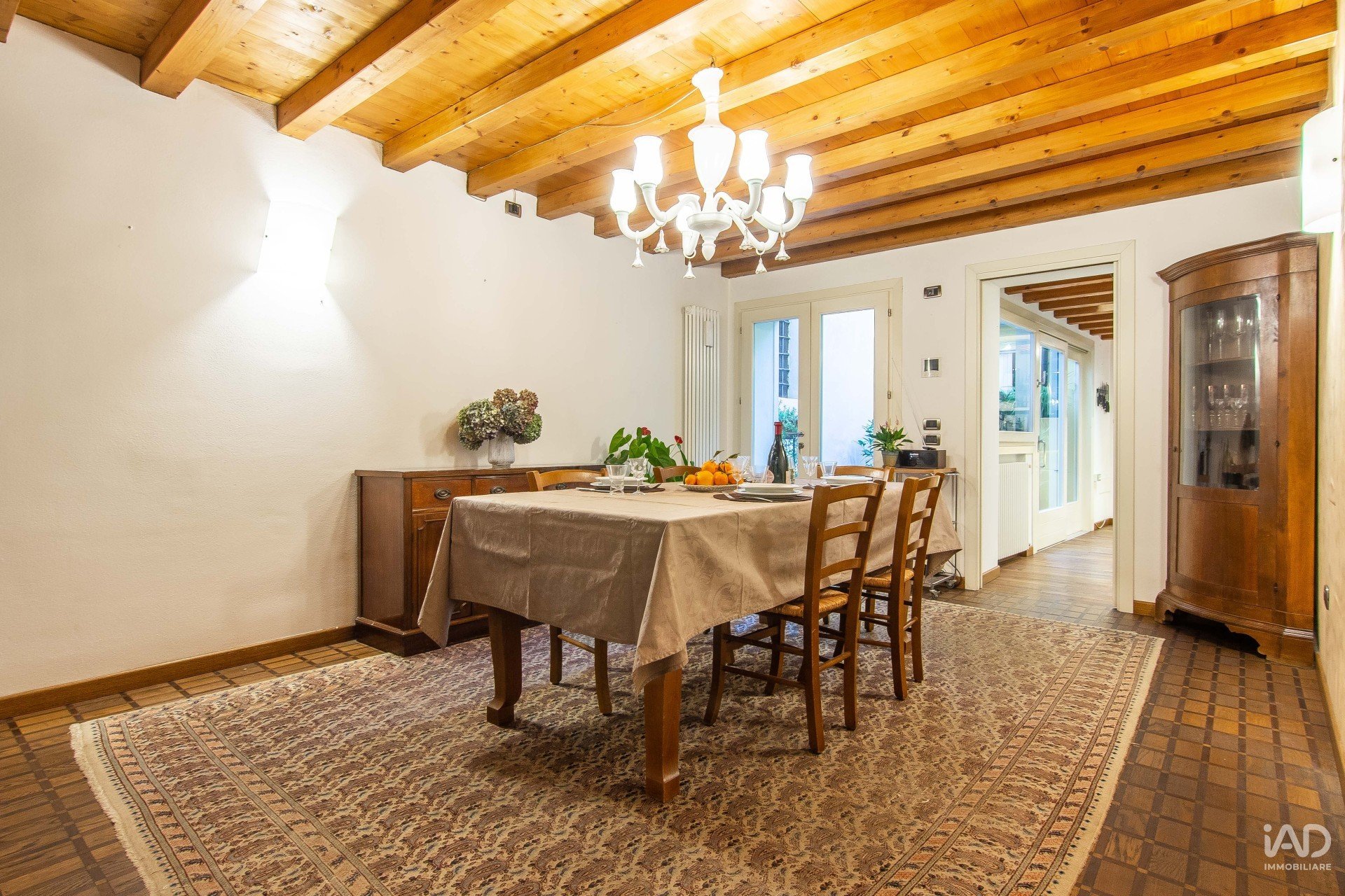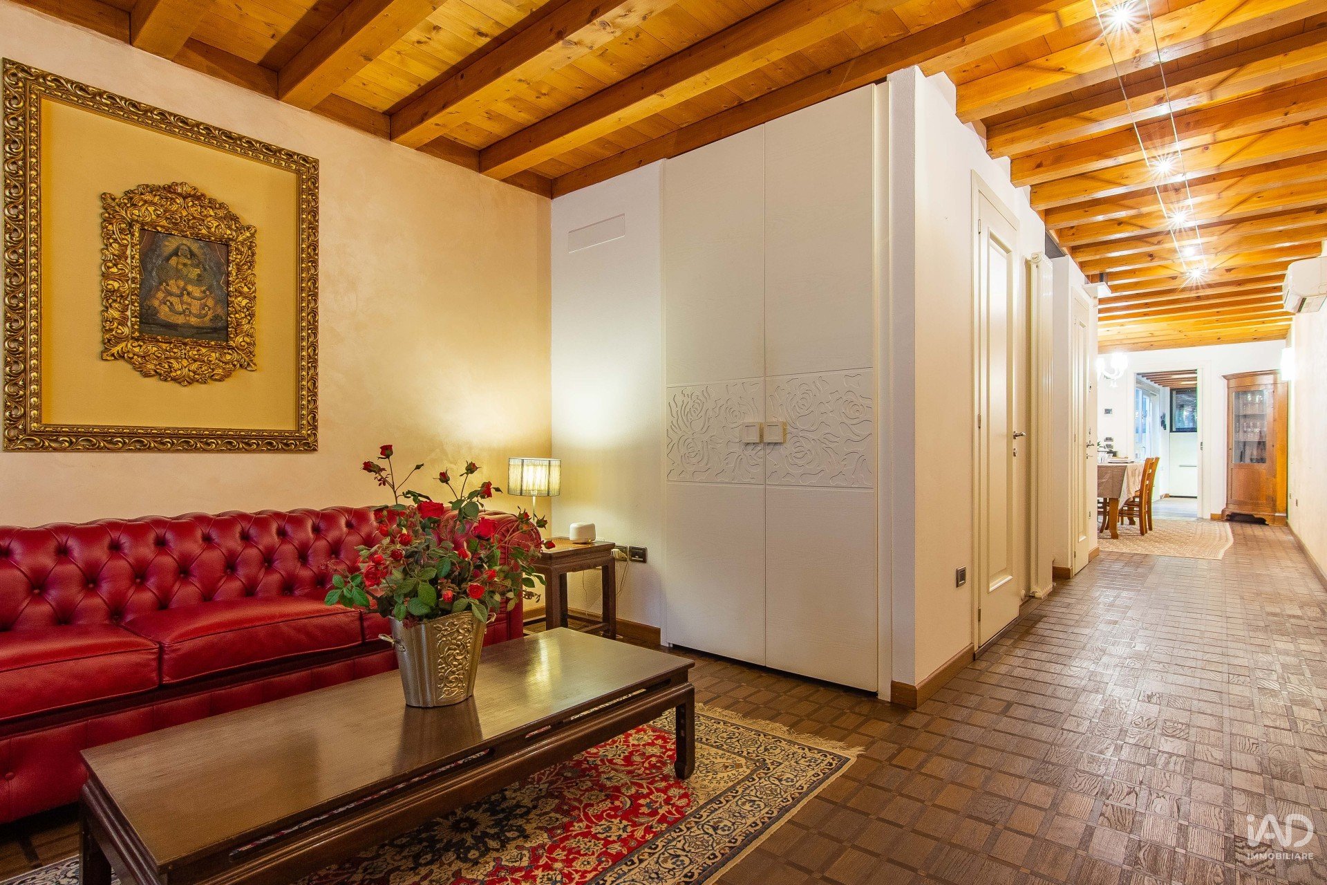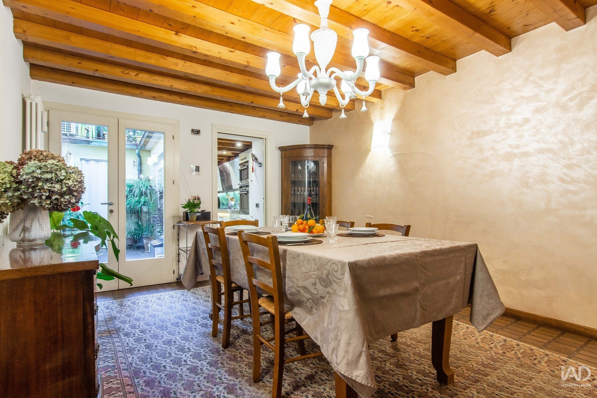 Sotto ad uno di questi porticati, una porta ci apre ad una abitazione ristrutturata con grande cura e materiali molto pregiati, che restituisce a chi vi entra una sensazione di calore e sicurezza, la stessa sensazione che vivrà ogni giorno il fortunato nuovo proprietario di questa casa oggi disponibile per l’acquisto.