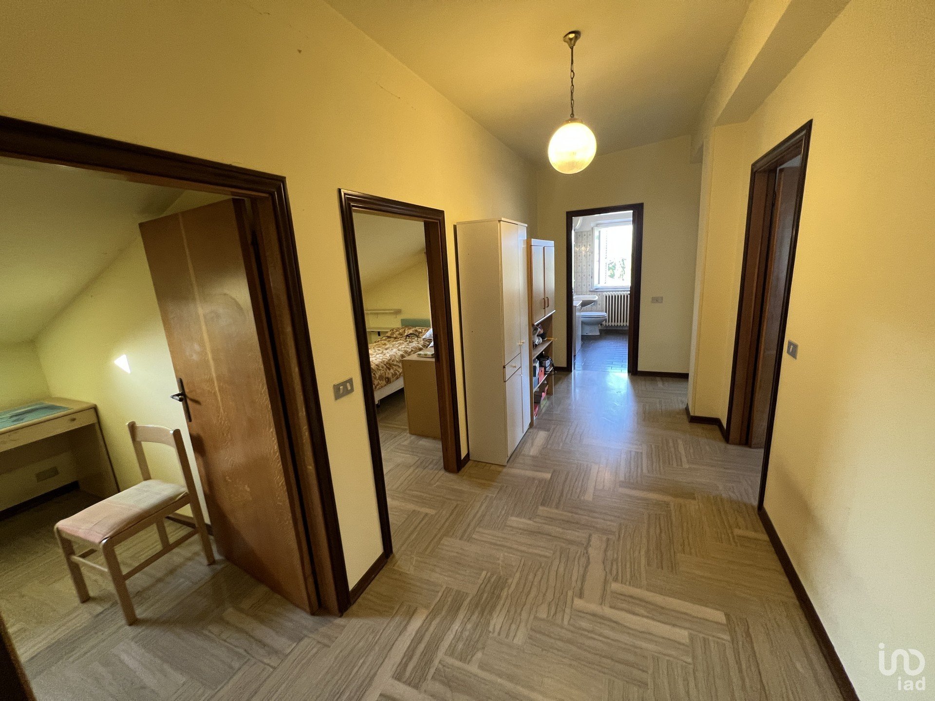 L'appartamento si compone di sala da pranzo, cucina, due ampie camere matrimoniali due camerette ed un bagno. Nella parte bassa della mansarda un comodo sgabuzzino.
