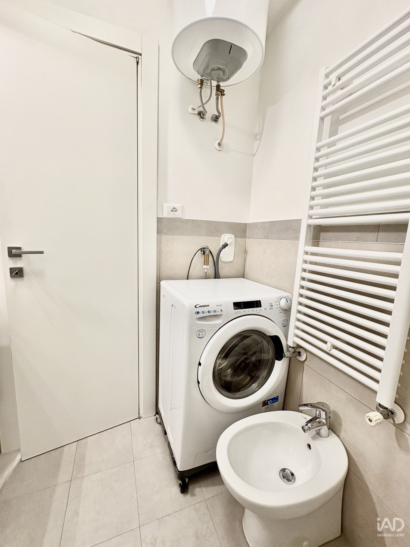 L'immobile è composto da entrata con cucina, bagno con doccia e lavatrice/ asciugatrice, salotto con divano letto.
