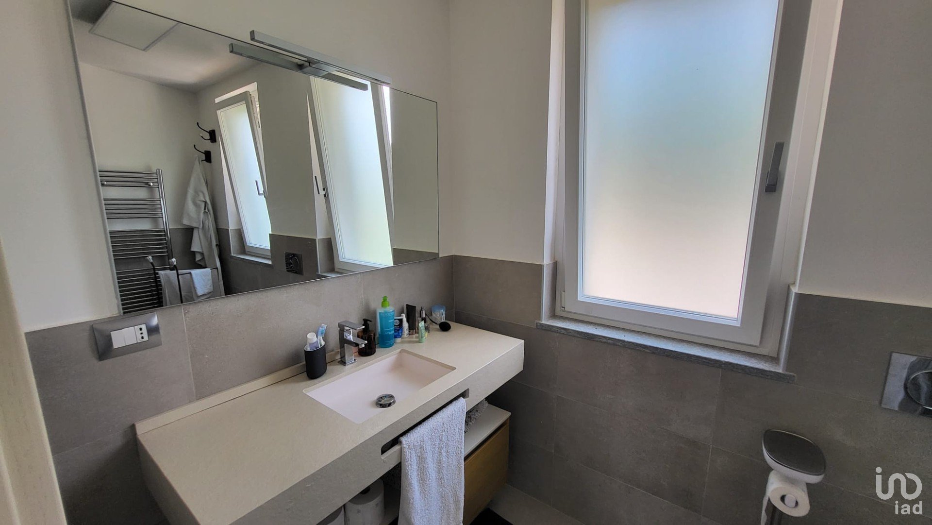 Dall'ingresso ci affacciamo nel grande salone con cucina all'americana molto ben attrezzata; grande e ariosa camera da letto matrimoniale; bagno con antibagno, box doccia doppio e spazio lavanderia.