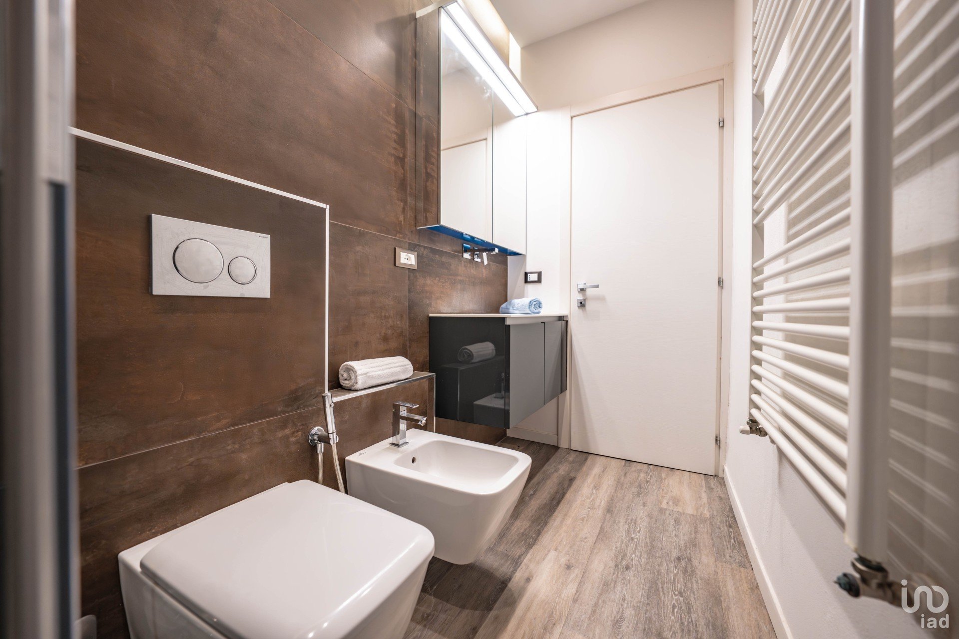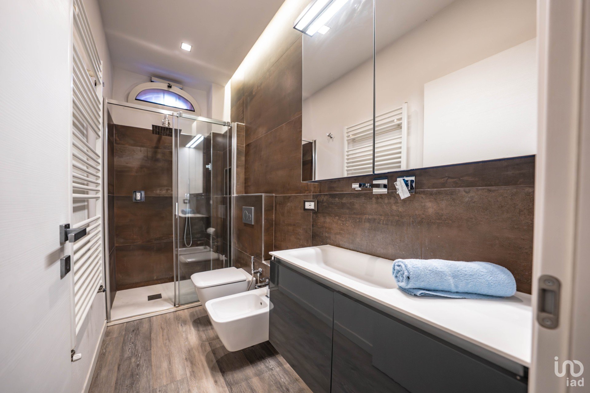 Bagno contemporaneo, funzionale e curato nei dettagli.