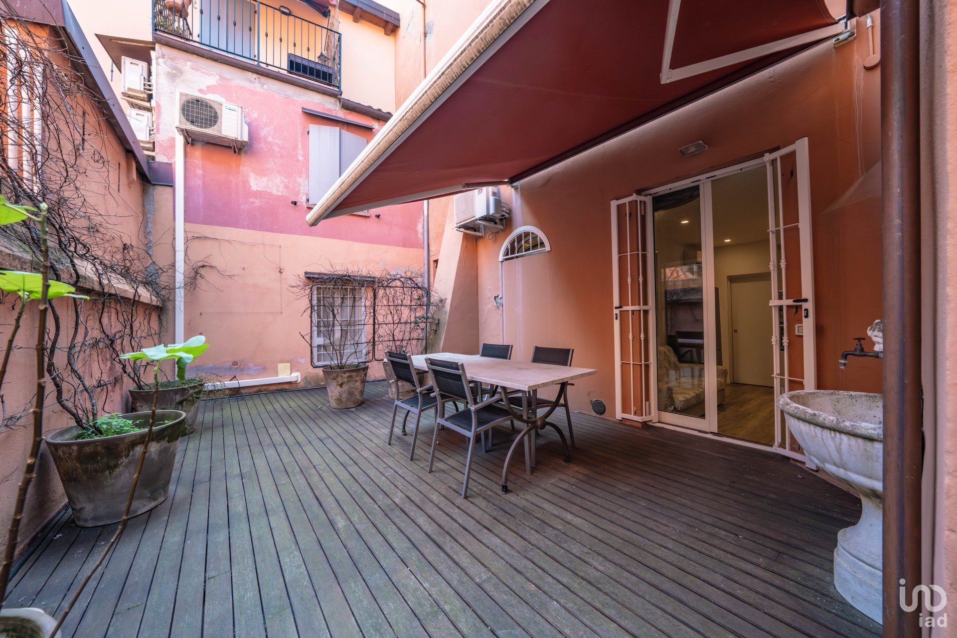 🌿 Il vero punto di forza? La corte privata. Un’oasi di pace nel cuore pulsante della città: pavimentata in teak e arricchita da una tenda solare, offre massima privacy e comfort all’aperto, perfetta per cene estive, letture al sole o semplicemente per godersi un momento di quiete.