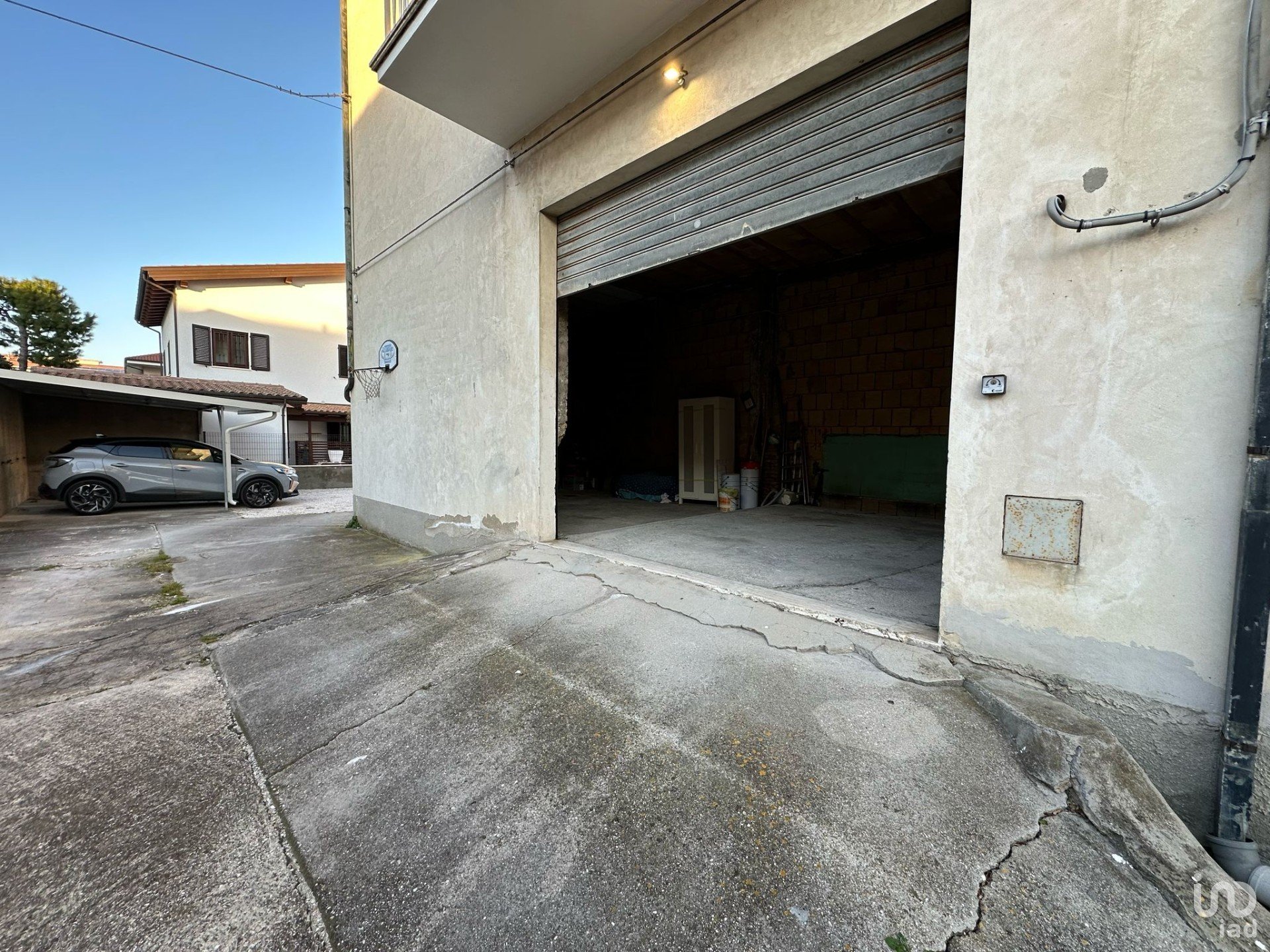 Il garage, allo stato grezzo, è composto da un unico ambiente con altezza interna di 3,93 metri, dotato di serranda elettrica per un accesso pratico e sicuro e di una porta laterale. Grazie alla sua ampia metratura, è ideale per ospitare due auto o per essere utilizzato come magazzino o deposito attrezzature.