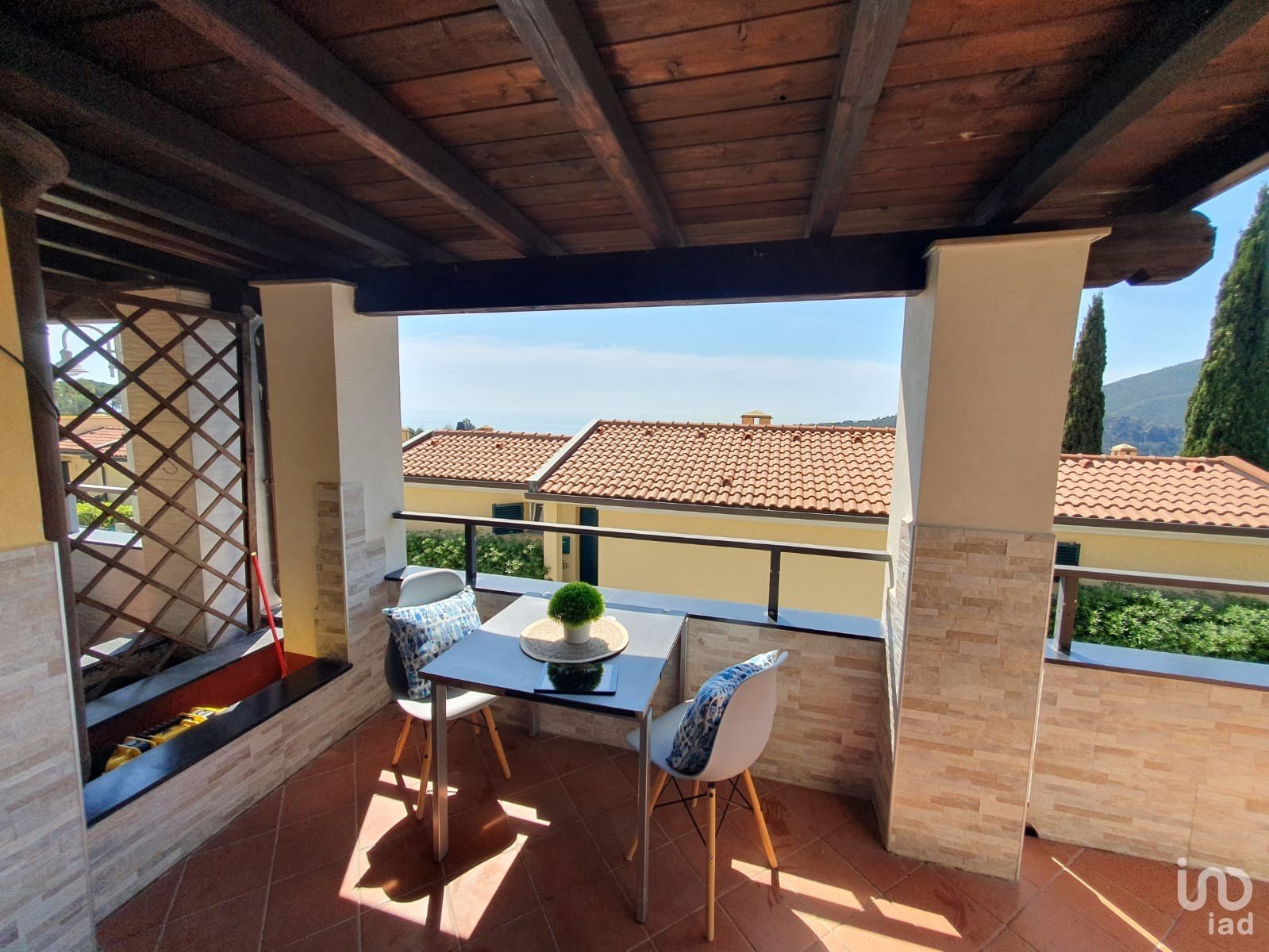 • Spazi esterni: Gli spazi esterni in cui poter trascorre con i propri cari momenti indimenticabili sono diversi e ben distribuiti. Sul fronte del soggiorno la terrazza coperta vista mare permette di pranzare avvolti dal blu del mare. In un'altra posizione della casa, troviamo una grande terrazza dotata di una splendido dehor che crea un enorme zona esterna riparata dalle calde giornate estive.