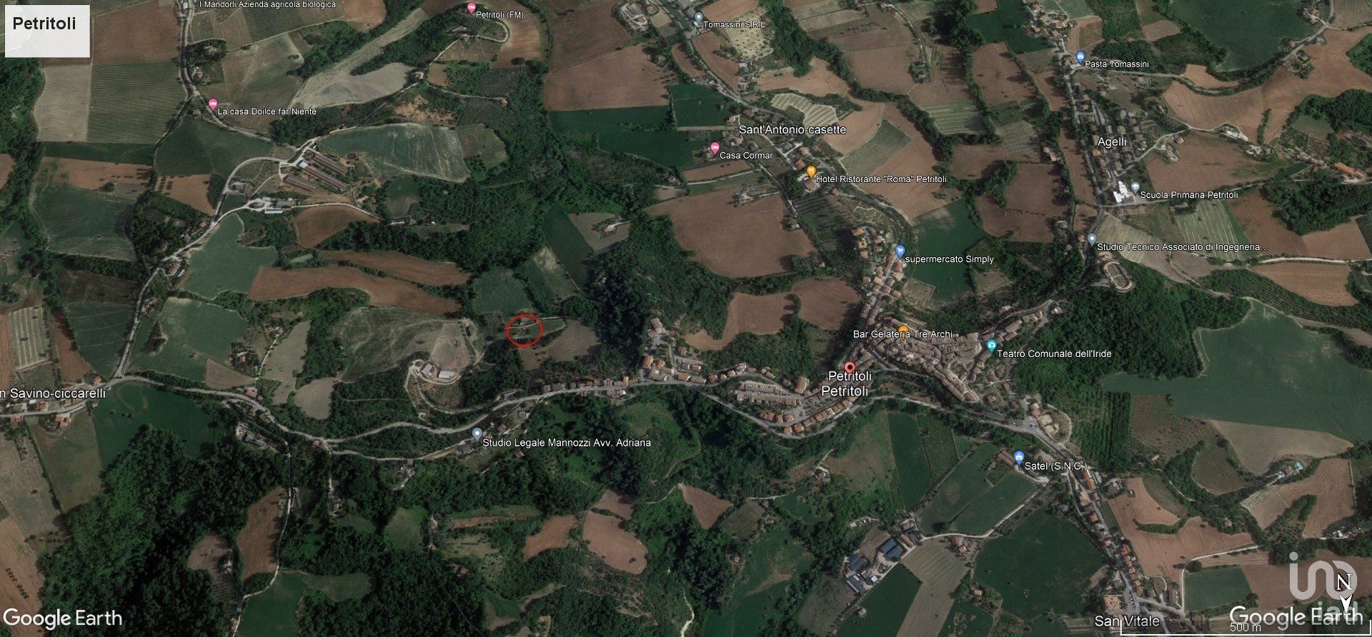 La proprietà è raggiungibile da strada pubblica e si trova sotto il borgo di Petritoli, esattamente sotto il presidio sanitario locale.
