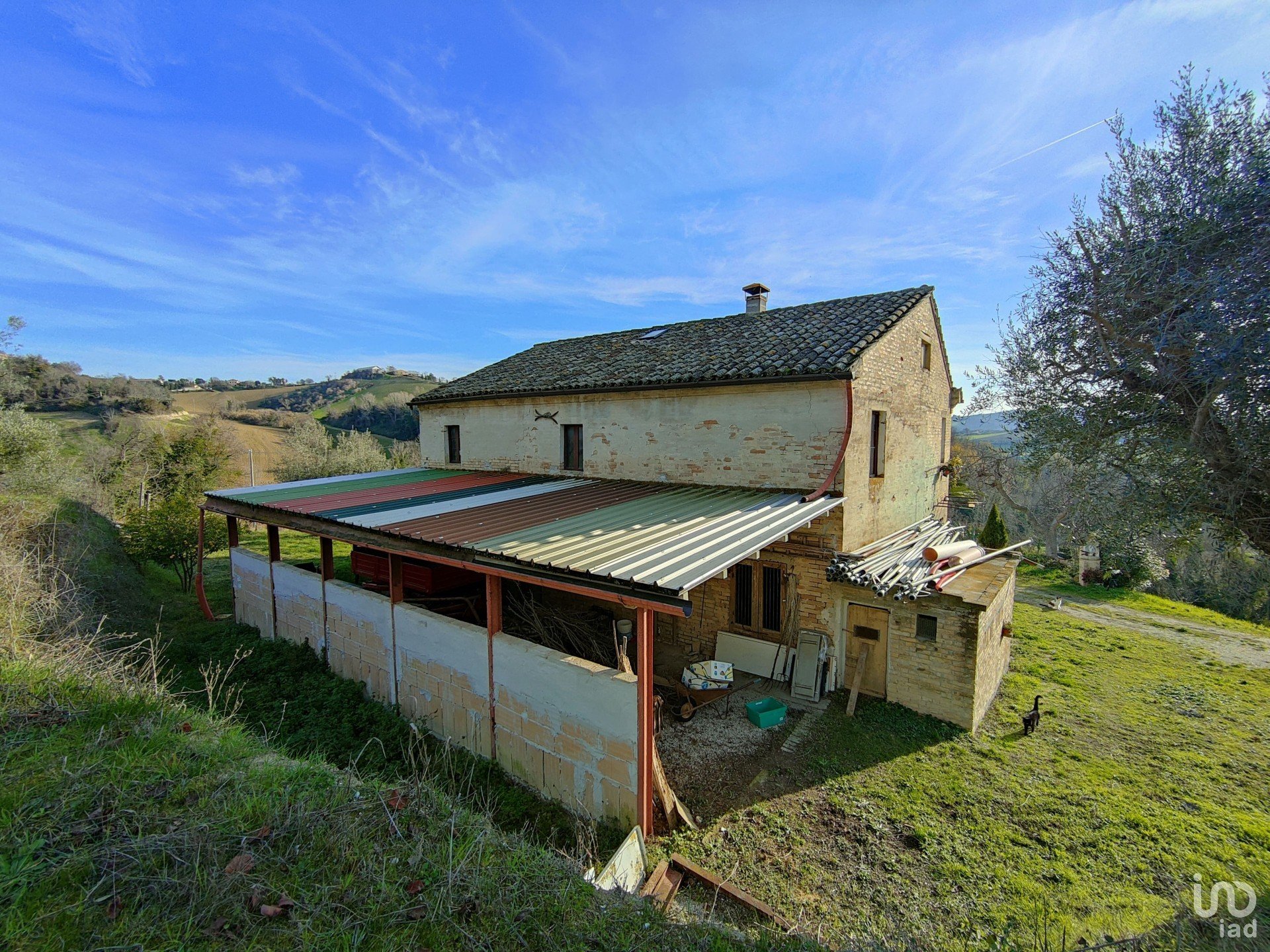 A Petritoli, in contrada San Savino proponiamo in vendita un casolare con terreno a meno di 1 km dal paese.