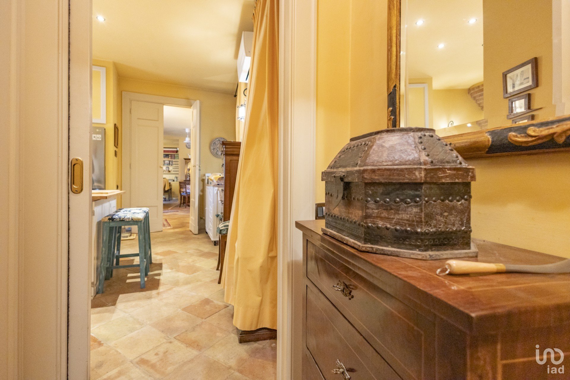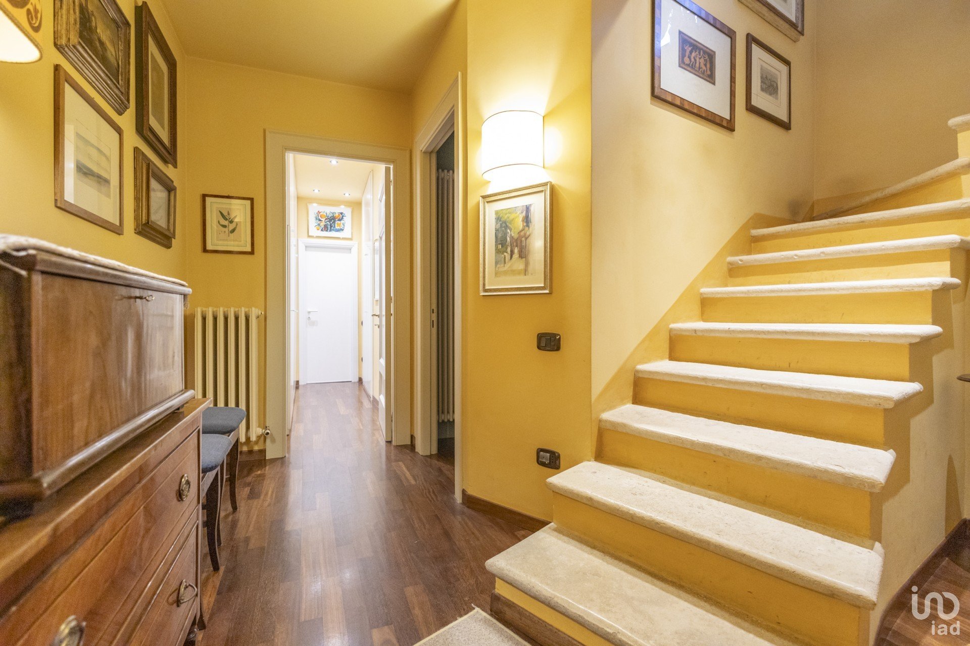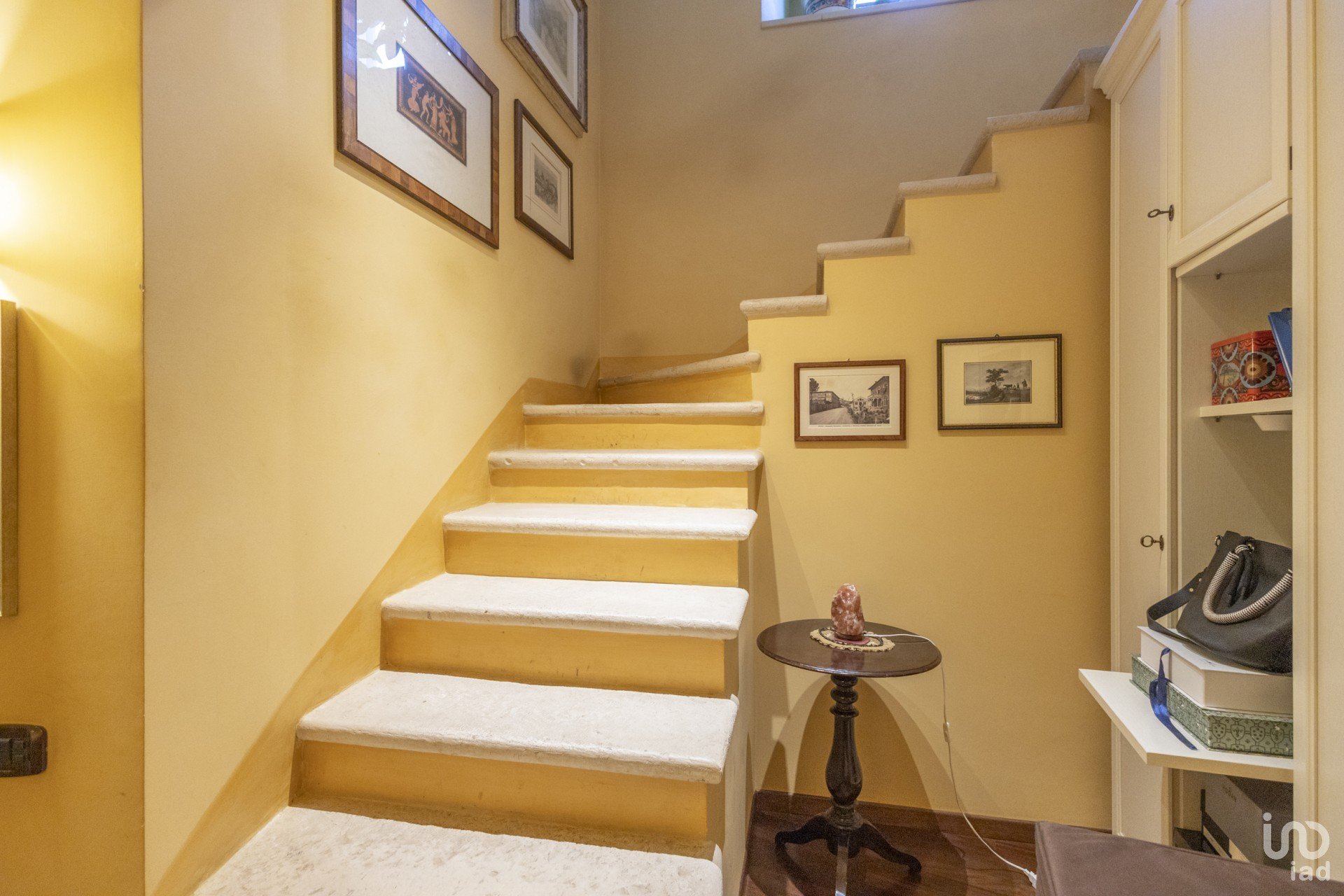 Questa dimora è un vero gioiello di eleganza e calore. Gli interni, in un raffinato stile classico, sono pervasi da tinte accoglienti che creano un'atmosfera avvolgente. Il cuore della casa è il soggiorno, dove spicca un magnifico caminetto e una suggestiva scala in travertino, entrambi recuperati con cura da un antico palazzo, testimoni di una storia che si fonde armoniosamente con il presente.