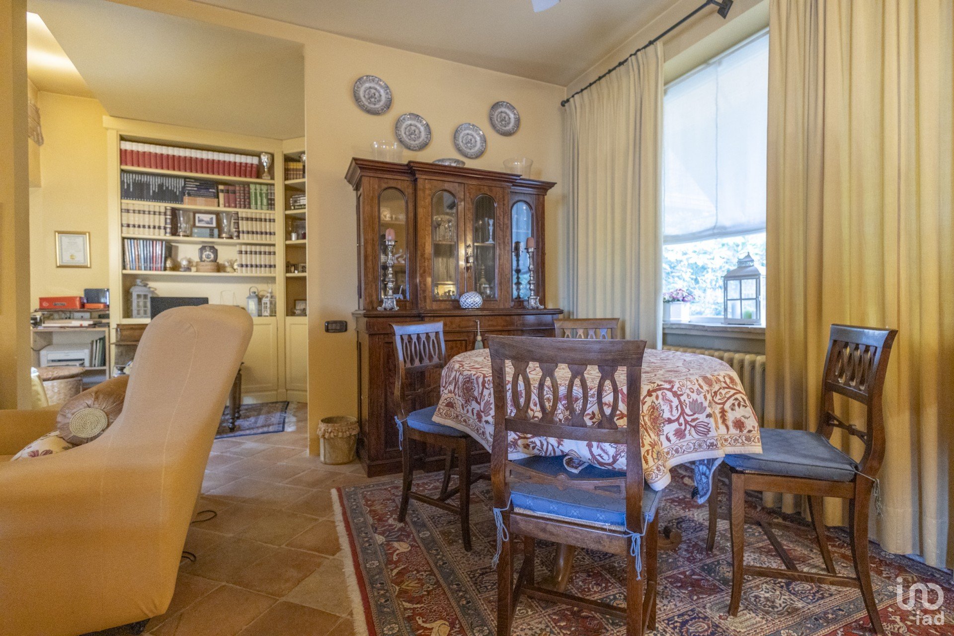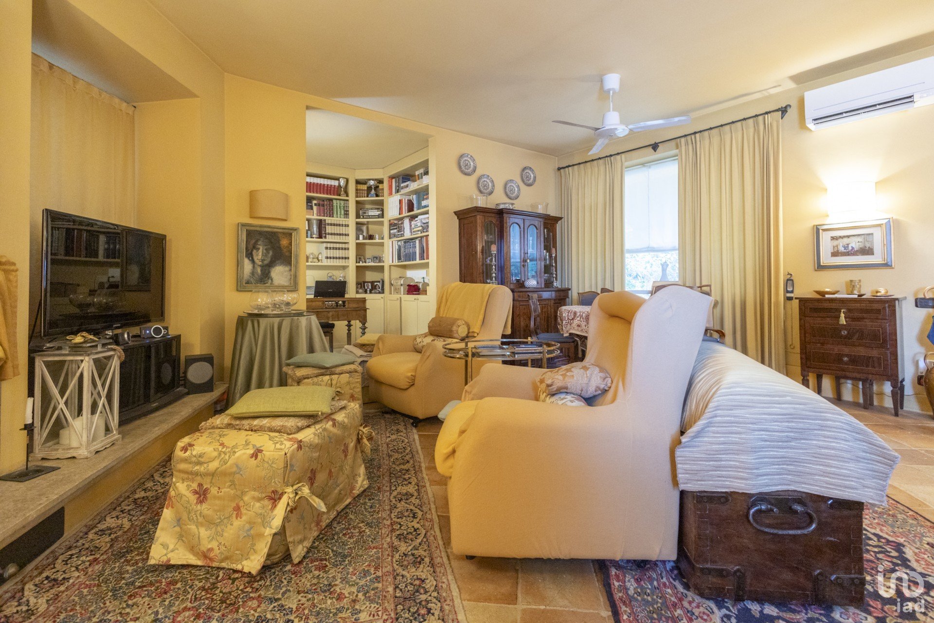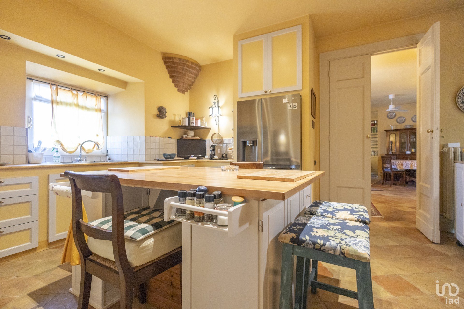 Questa dimora è un vero gioiello di eleganza e calore. Gli interni, in un raffinato stile classico, sono pervasi da tinte accoglienti che creano un'atmosfera avvolgente. Il cuore della casa è il soggiorno, dove spicca un magnifico caminetto e una suggestiva scala in travertino, entrambi recuperati con cura da un antico palazzo, testimoni di una storia che si fonde armoniosamente con il presente.