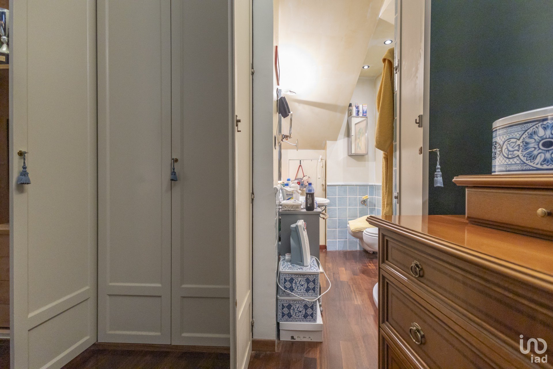 Al piano inferiore si accede a un disimpegno che conduce a un ampio bagno con vasca e a due camere da letto. La camera padronale vanta un esclusivo bagno en suite, garantendo privacy e comfort. Completano il piano vari ripostigli e spazi di servizio.