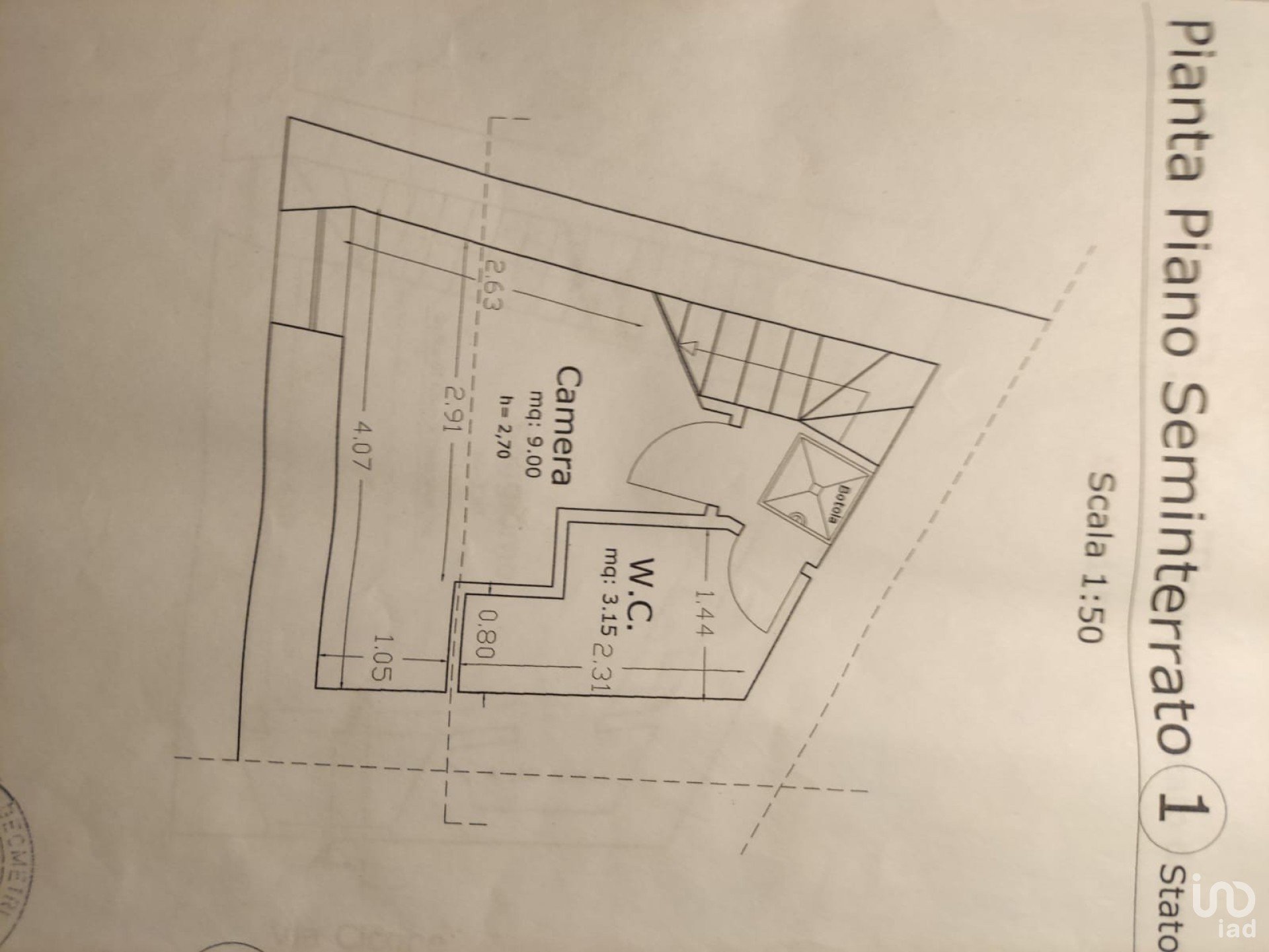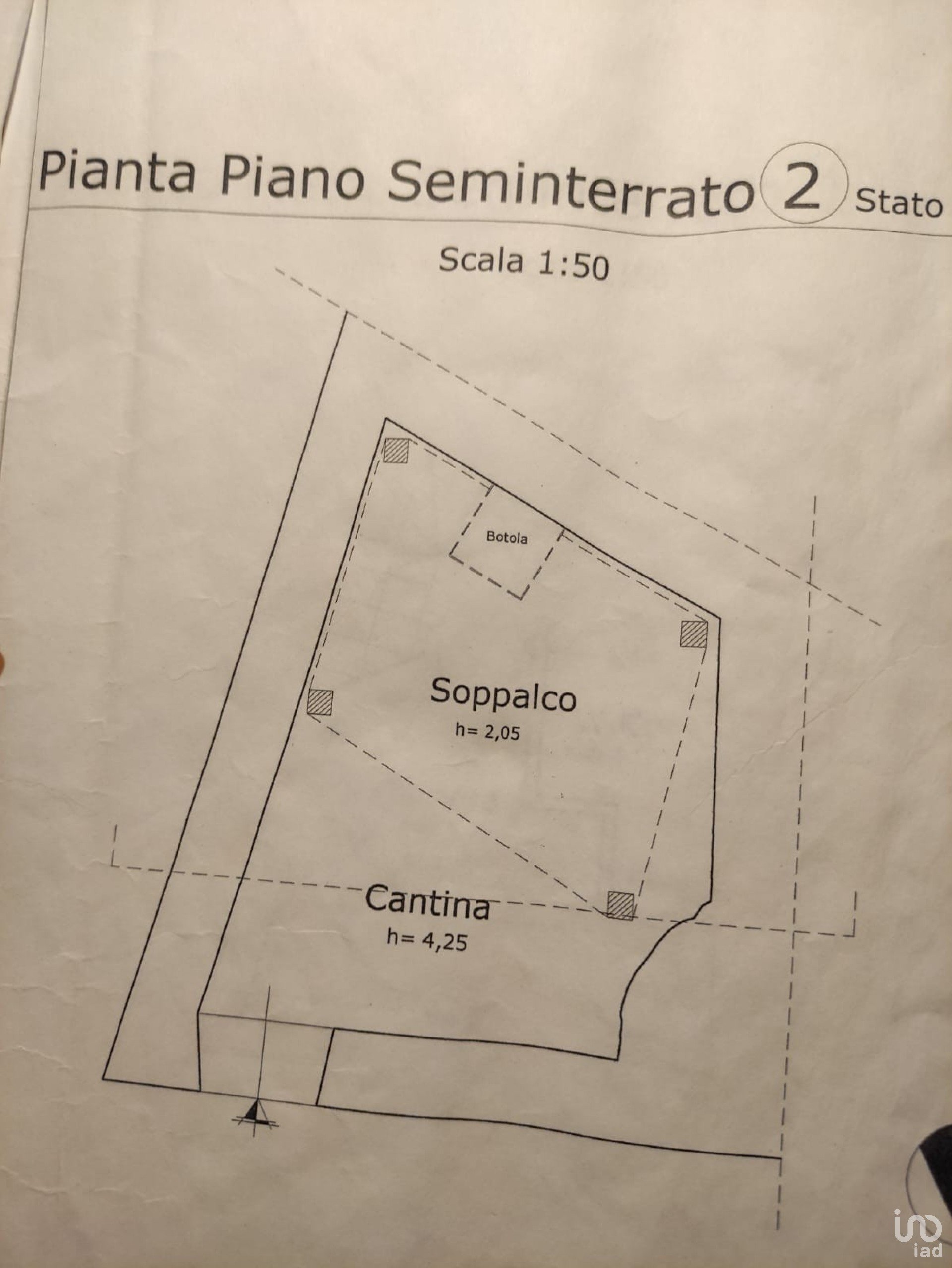 Al Piano S-2 troviamo la Cantina con accesso su strada e tramite botola situata al piano S1.