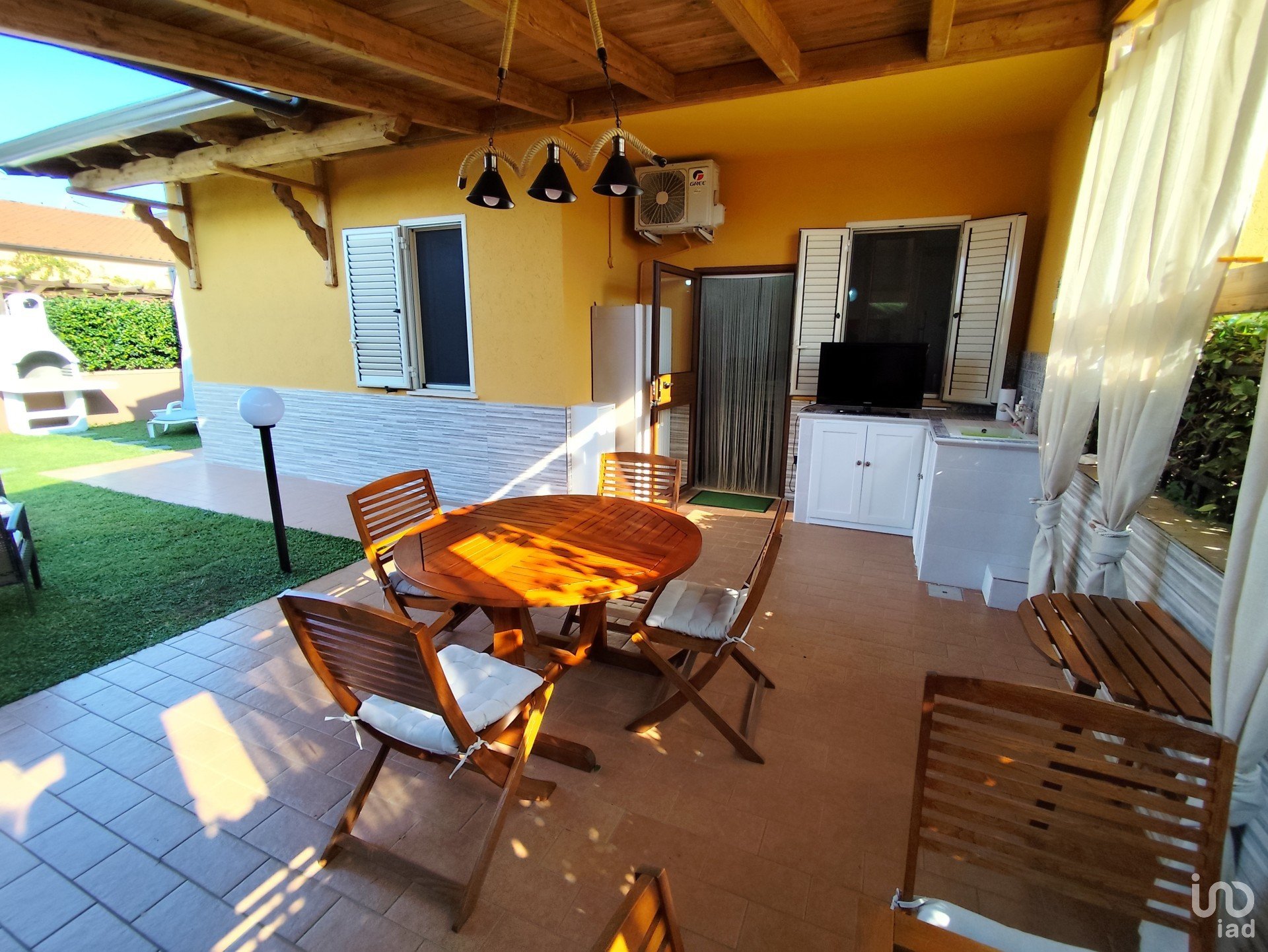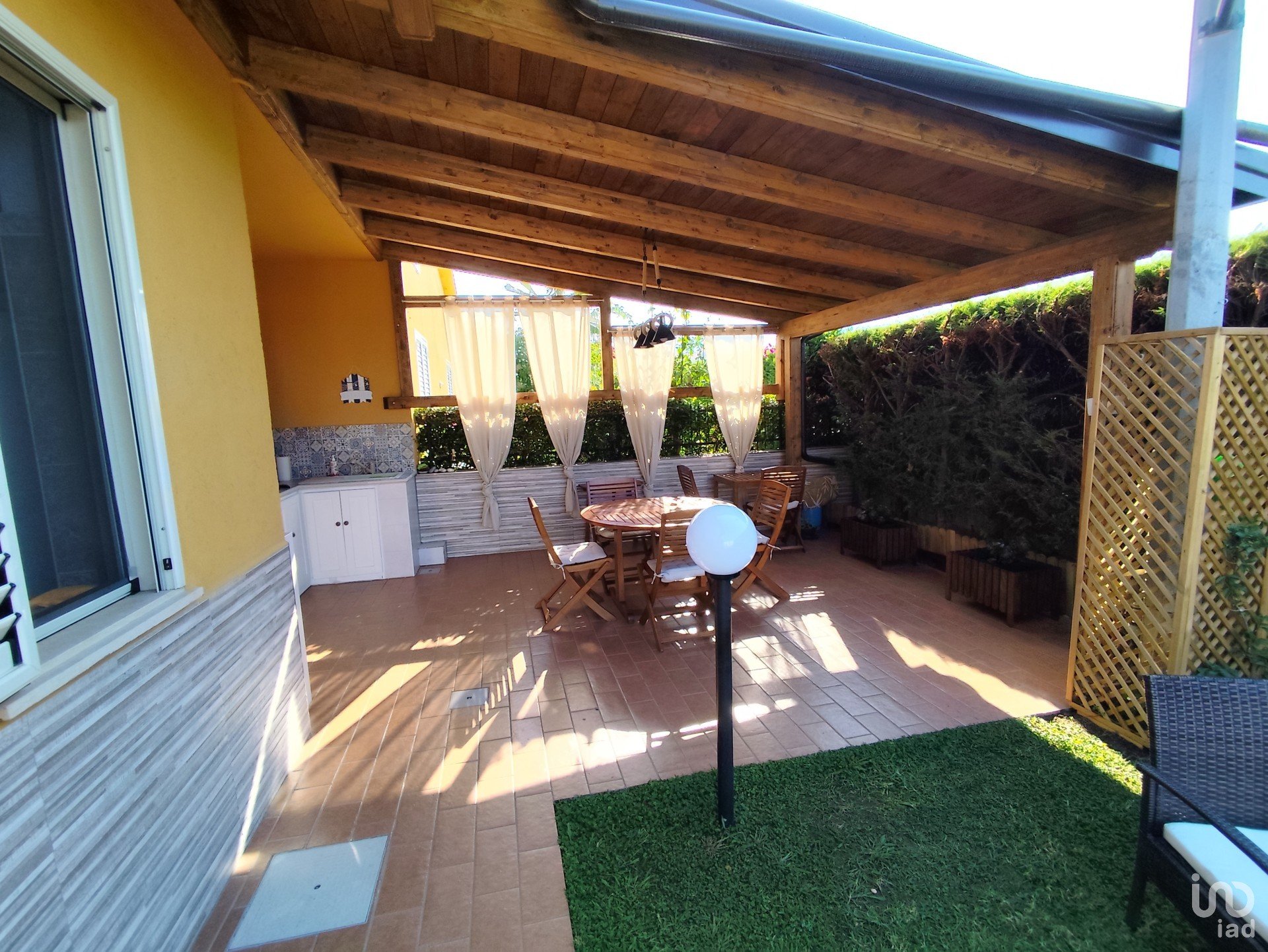 ll complesso turistico che ospita questa villetta è composto da 9 corpi quadrifamiliari edificati nel 2009 a torre mista cemento armato/laterizio che si elevano su un piano fuori terra con sottotetto non abitabile e giardino su due lati. E’caratterizzato da immobili che per taglio e metratura sono ideali per uso vacanza ma nonostante ciò è abitato da alcune famiglie tutto l’anno. I servizi che offre sono: pulizia e manutenzione aree comuni, illuminazione aree comuni, posti auto assegnati, pozzo artesiamo per carico acqua, zona centrale con piscina e solarium. Nonostante la piscina i costi di gestione sono davvero bassi, solo 400 euro all'anno di quota condominiale.