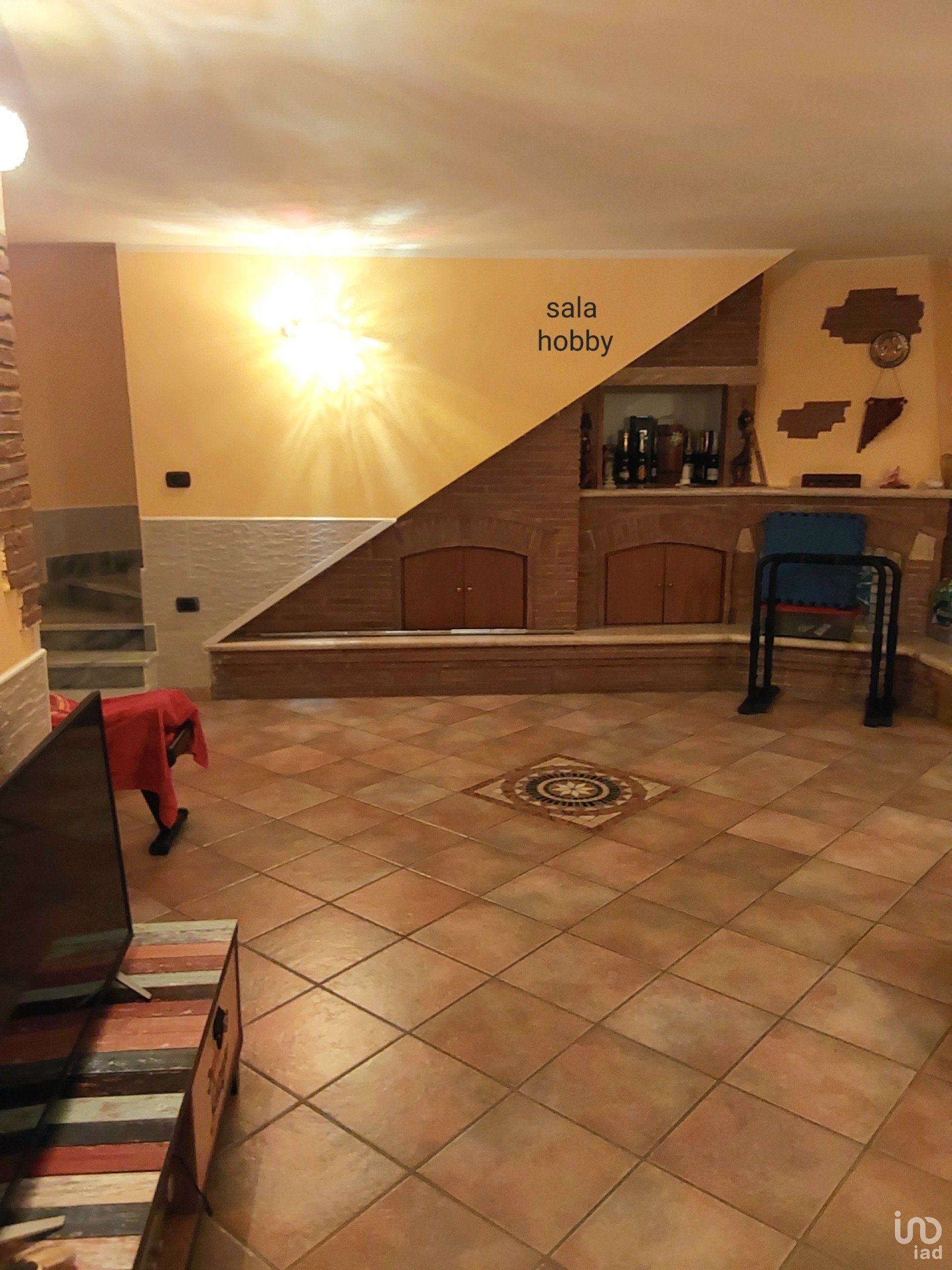 *Sala Hobby- già concepita e realizzata come confortevole ambiente living, composto in salone con camino e armadio a muro, cucina, servizio, ingresso pedonale al box/garage di ampia metratura.Una vantaggiosa Intercapedine perimetrale è servita alla rampa di accesso al box.