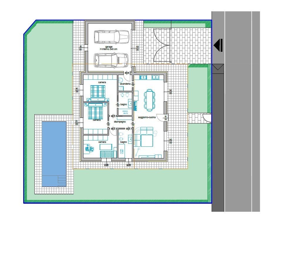 Alla villa su richiesta si può aggiungere la piscina, un impianto di domotica avanzata, il giardino piantumato ed altri accessori.