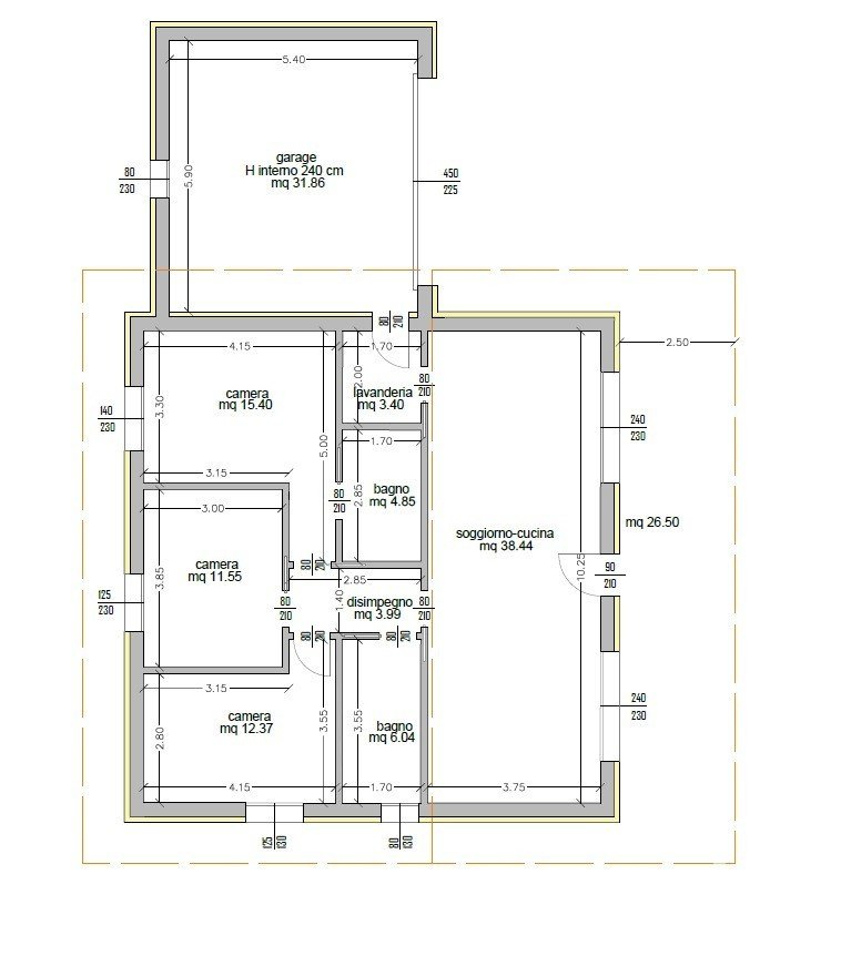 La casa è di circa 120 mq, con un box auto di circa 32 mq., calpestabili, su un terreno di 550,00 mq., per un commerciale di mq 166,00.