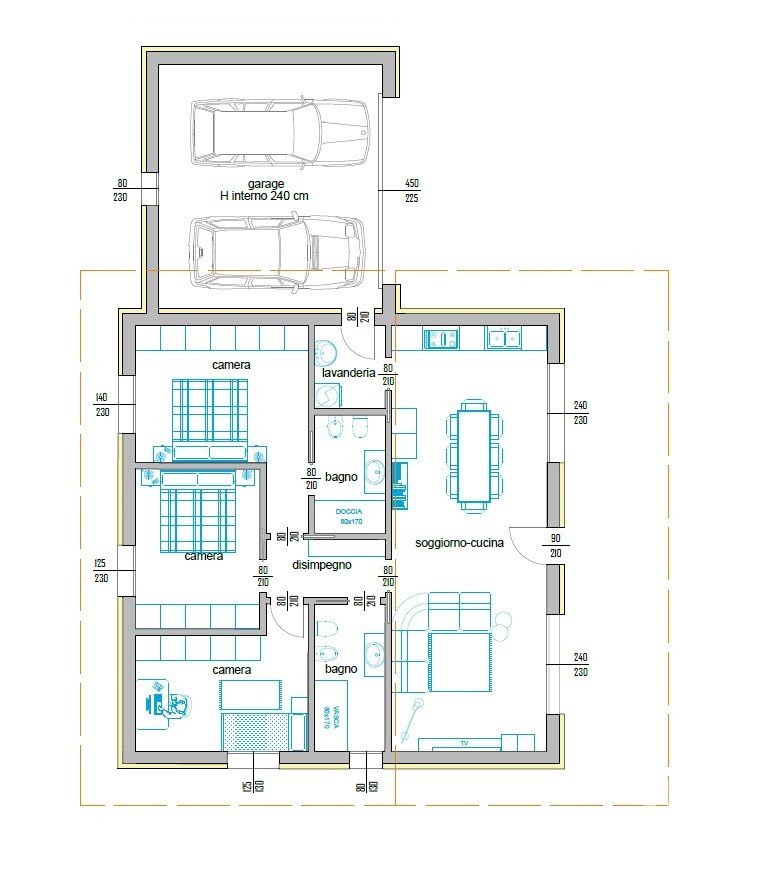 La sua composizione è con ingresso indipendente, soggiorno con zona cucina a vista, 2 bagni, 3 camere letto di cui 2 matrimoniali e 1 singola .