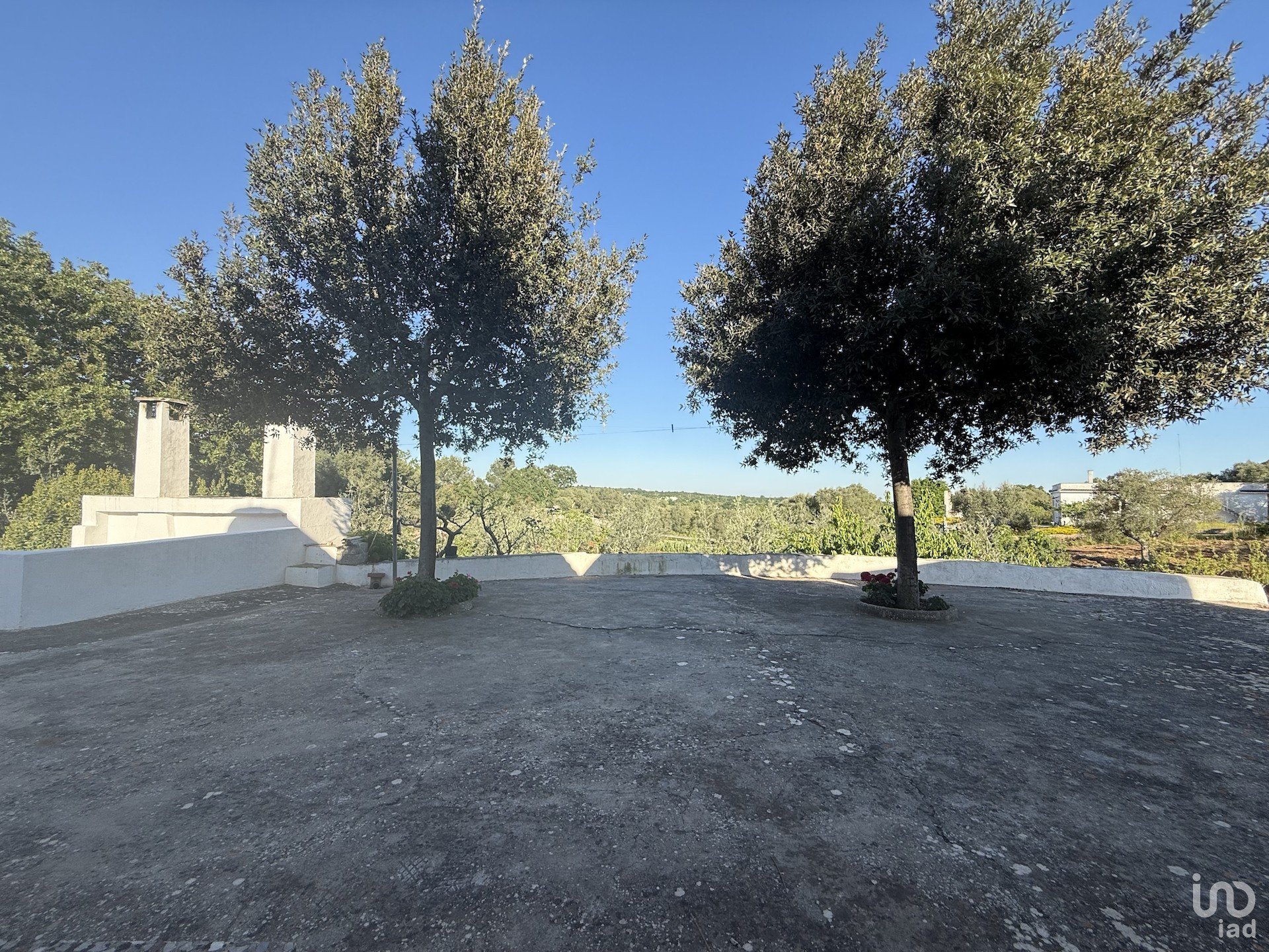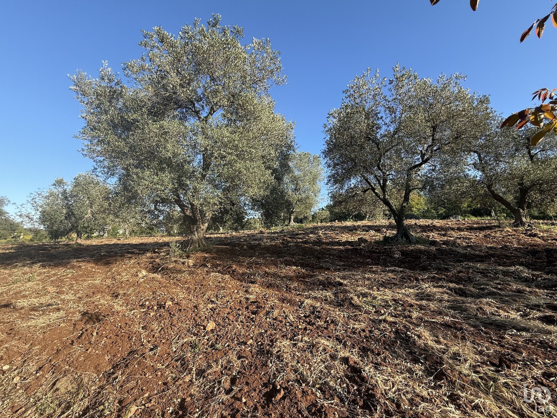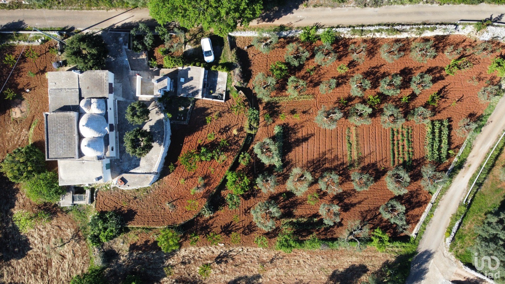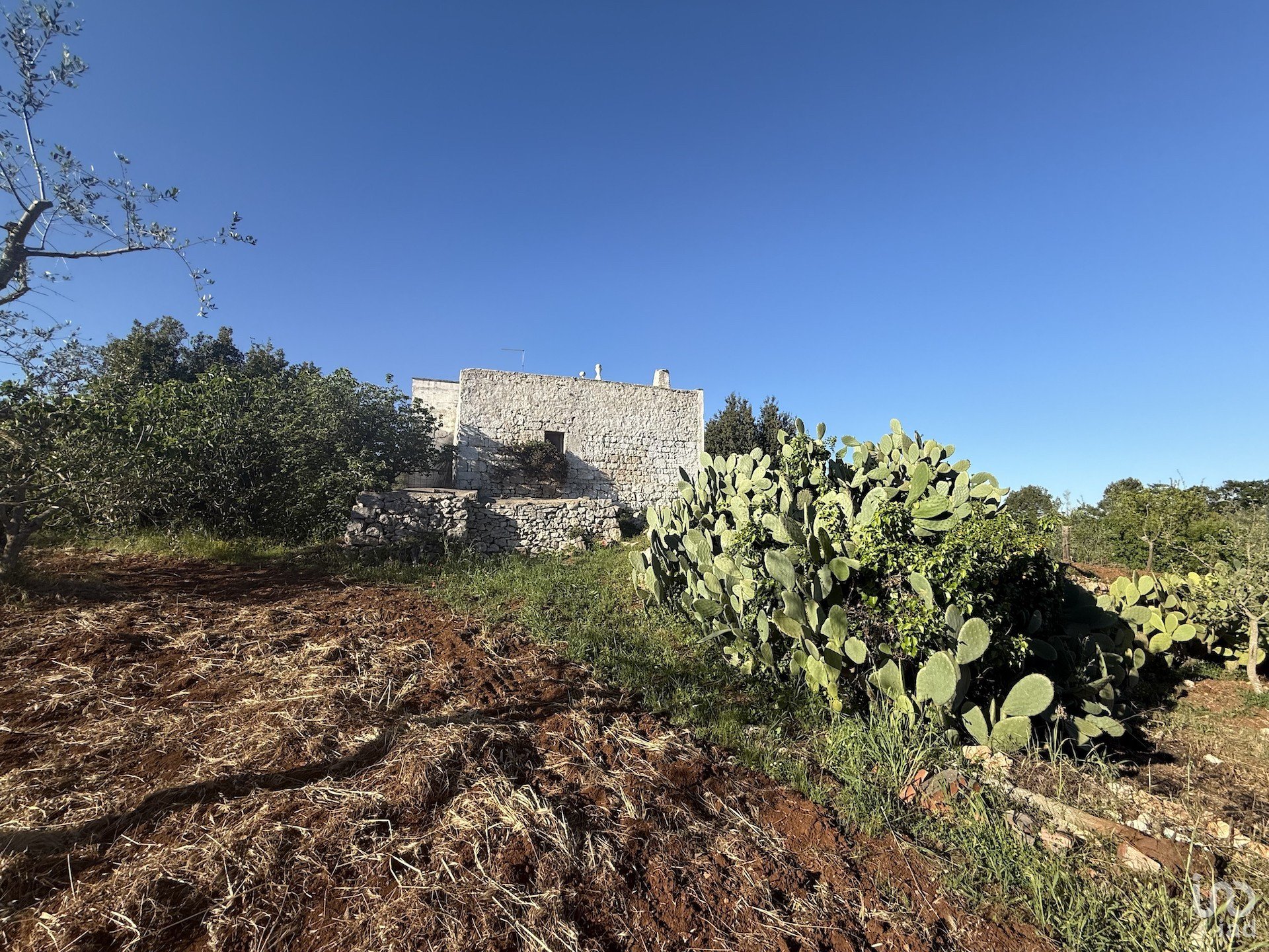 Il terreno, ben curato e completamente recintato, è coltivato a uliveto, orto irrigato, numerosi alberi da frutto, fichi d’India, e comprende anche una suggestiva porzione di bosco di querce.