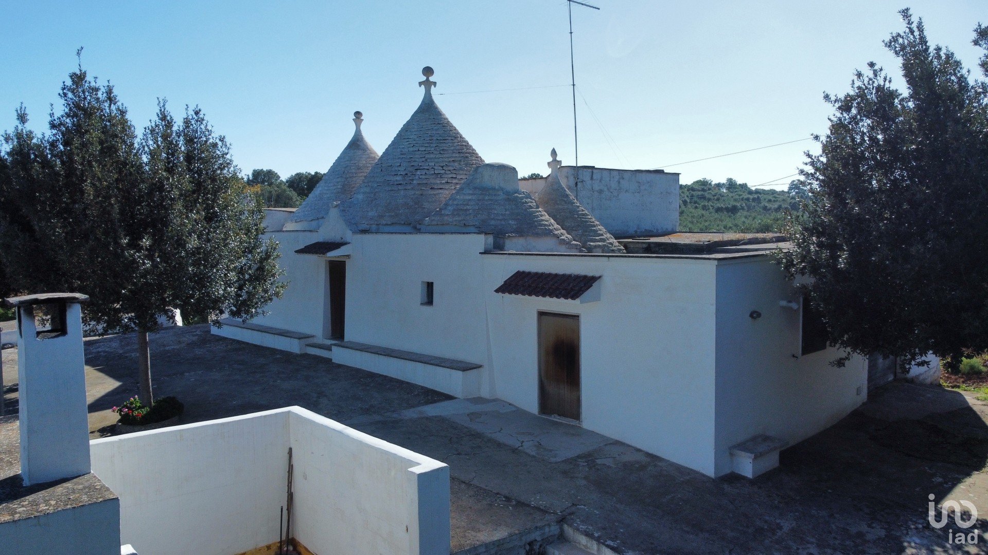 Il fabbricato è composto da una parte antica, costituita da quattro trulli (due grandi e due piccoli) e una lamia di circa 25 mq.