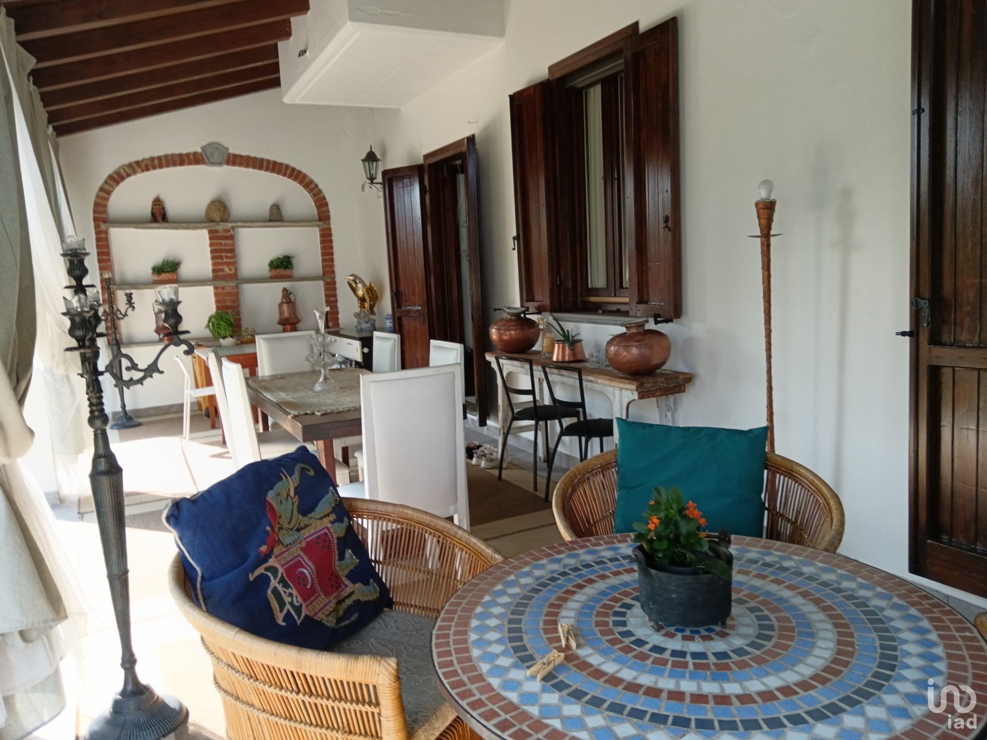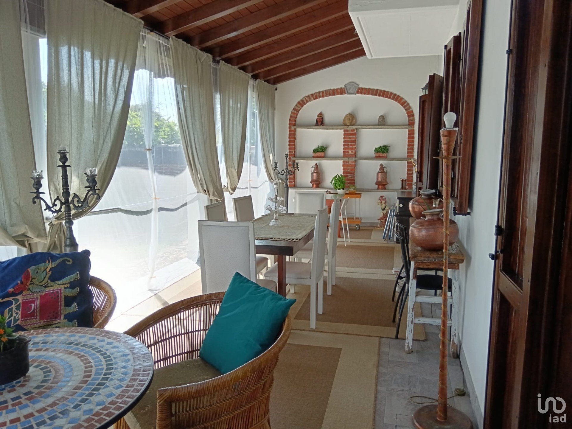 La villa si compone, al piano terra, di ingresso, soggiorno con accesso al portico e al giardino interno, salotto con camino, cucina-pranzo, bagno con sanitari completi e locale lavanderia.