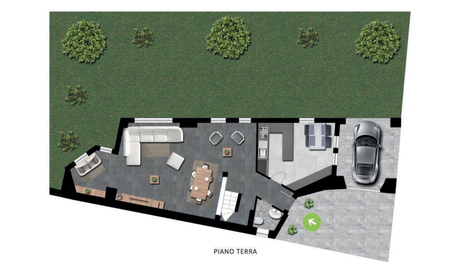 Esterni: qui troviamo il GRANDE GIARDINO che rappresenta un’oasi di pace, ideale per pranzare all’aperto nell’area barbecue, rilassarsi all'ombra degli alberi secolari o dedicarsi al giardinaggio.