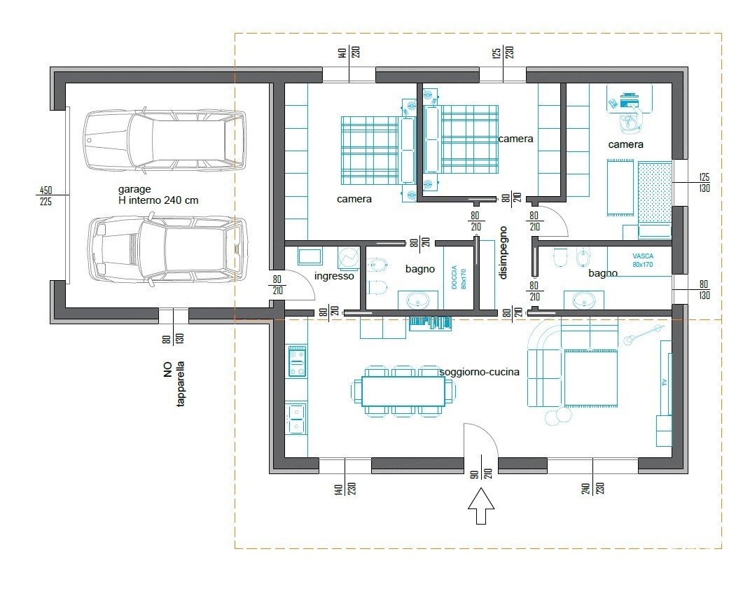 La sua composizione è con ingresso indipendente, soggiorno con zona cucina a vista, 2 bagni, 3 camere letto di cui 2 matrimoniali e 1 singola .
