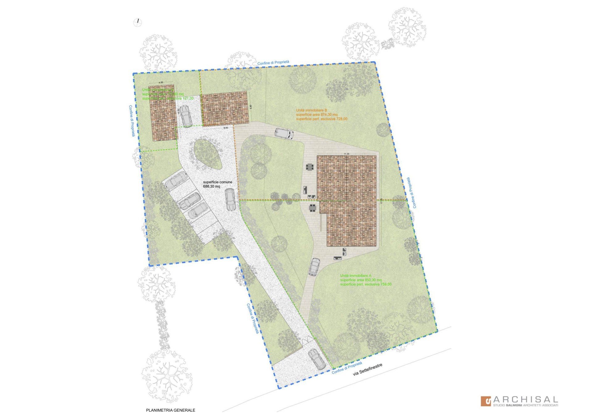 L'intero edificio, che prenderà vita dalla demolizione e ricostruzione dell'attuale Casa Colonica, si dividerà in due Unità Abitative indipendenti, rispettivamente di 170mq e di 184mq oltre annessi e corte. Ciascuna delle due Unità infatti godrà del proprio giardino esclusivo di ampissima metratura (su cui si potranno realizzare peraltro anche due splendide piscine!), di un'abbondante corte pavimentata, di tre posti auto di proprietà e del proprio annesso, utilizzabile come perfetto box auto.