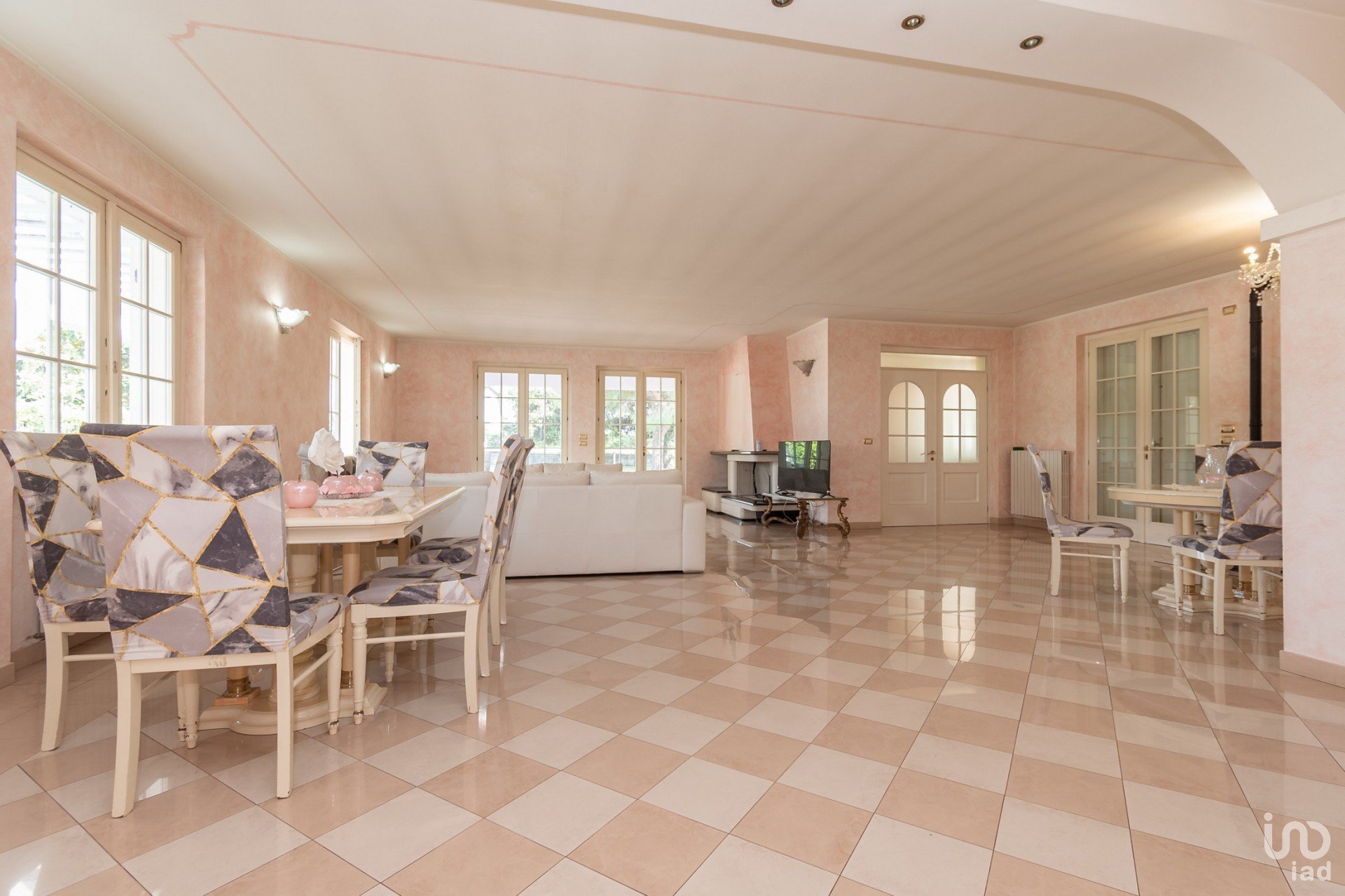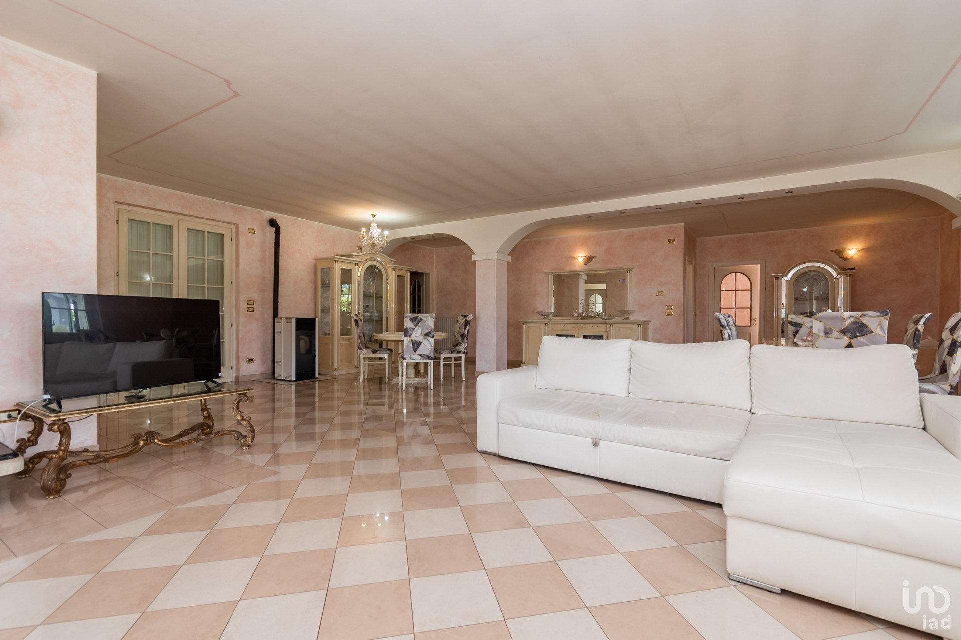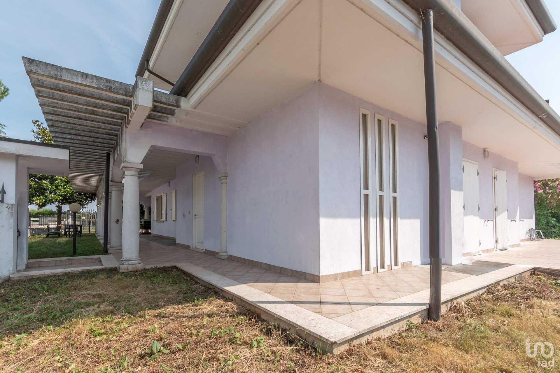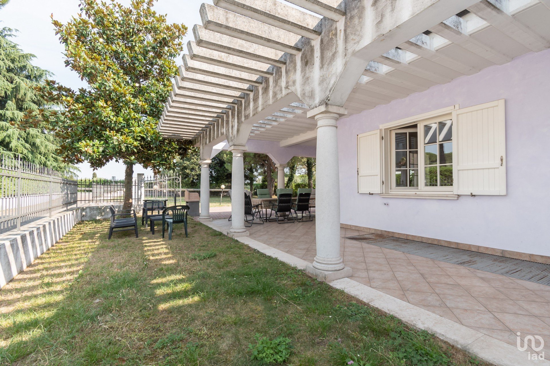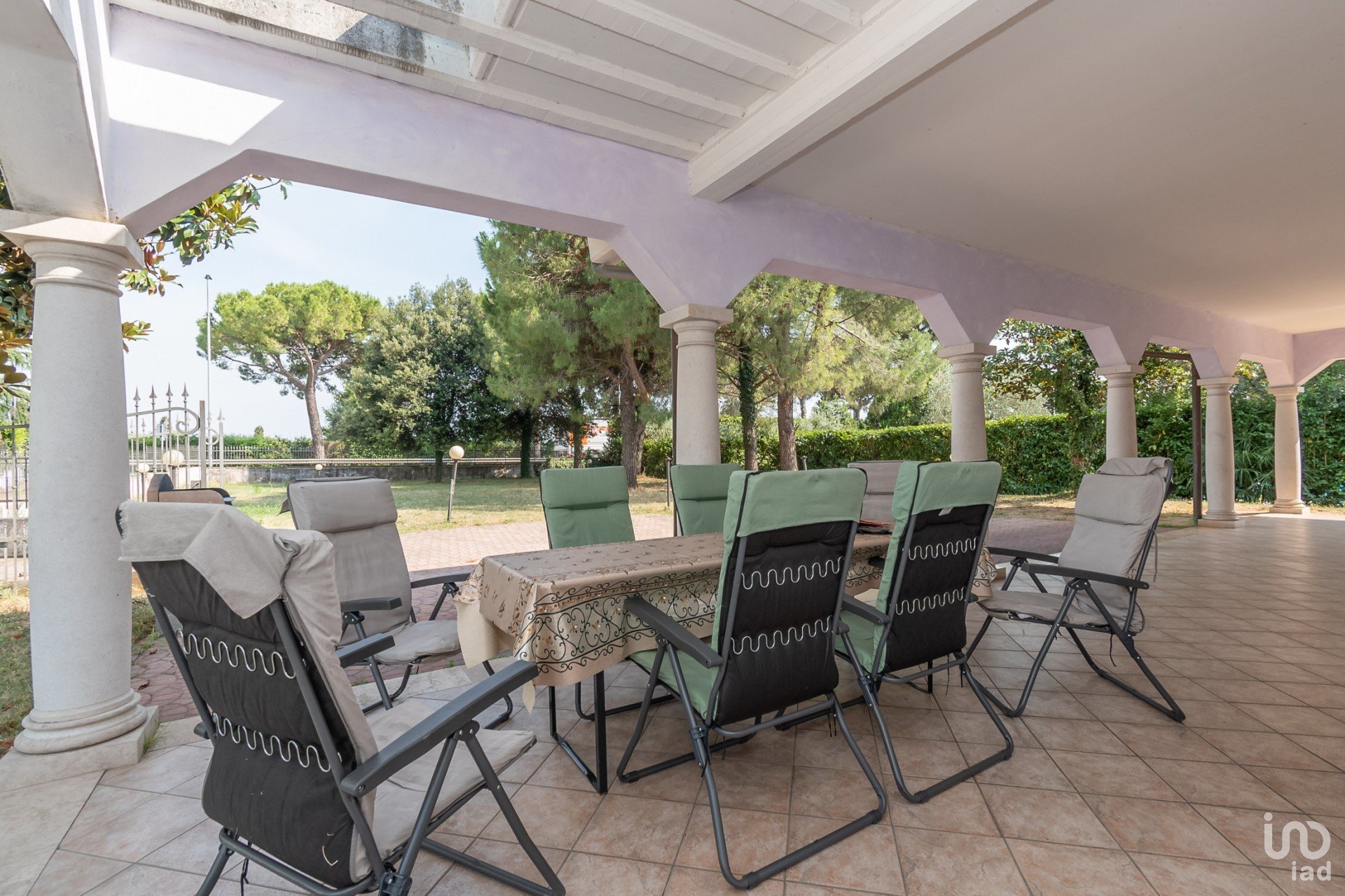 La Villa, è disposta su tre livelli abitativi, con l’ interrato, libera su 4 lati e area di pertinenza di circa mq 2.770, di cui mq 1.600 di giardino, con ampio portico, così composta: ingresso su grande soggiorno con cucina separata, camera matrimoniale con bagno privato, camera e bagno zona giorno, al piano primo camera matrimoniale con bagno, con due terrazze, nell’ interrato uso taverna con bagno, lavanderia, ripostiglio, posto auto coperto doppio.
