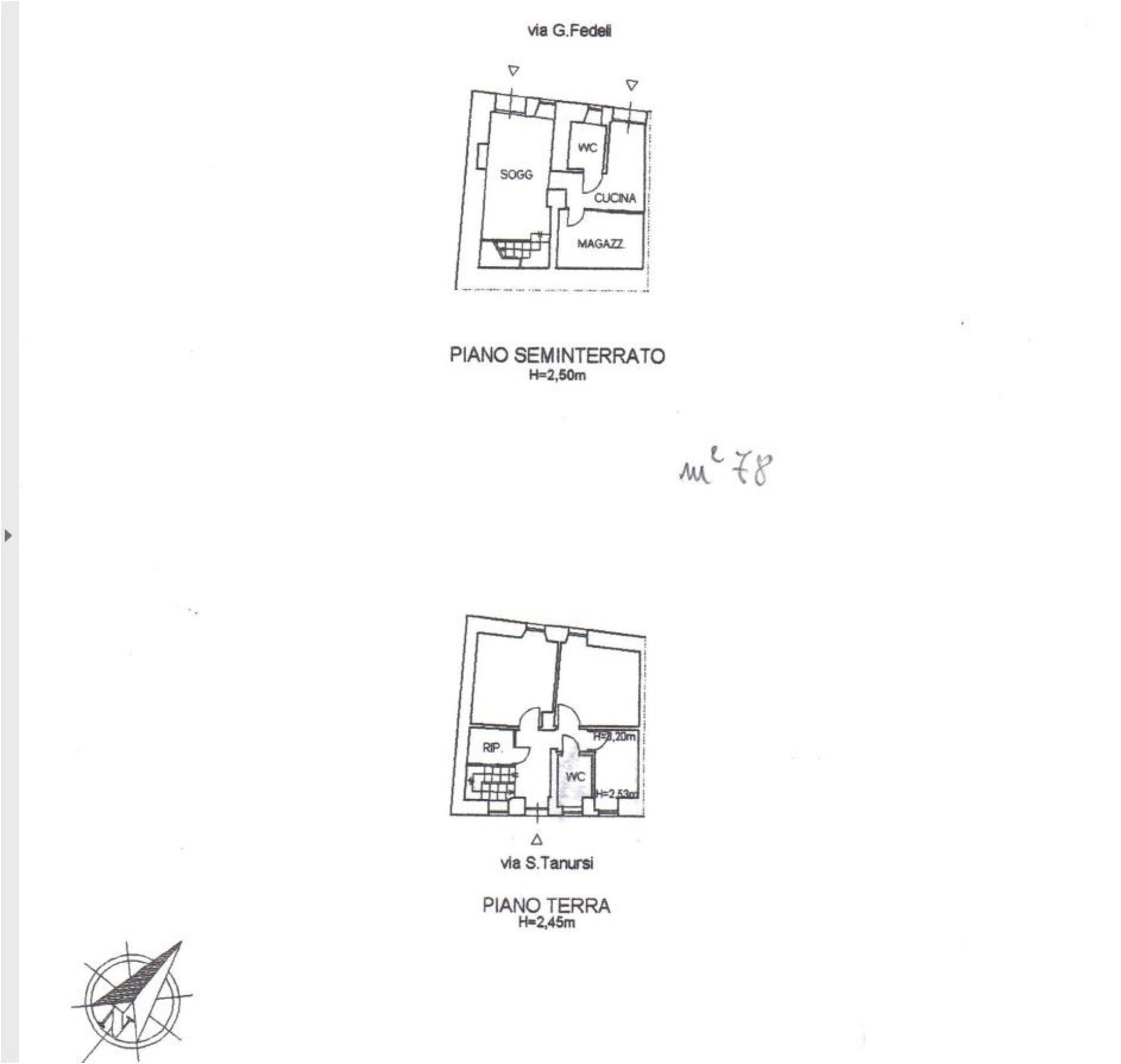 La casa è composta da due livelli, con due ingressi, uno superiore al vicolo ed uno inferiore allo stesso.