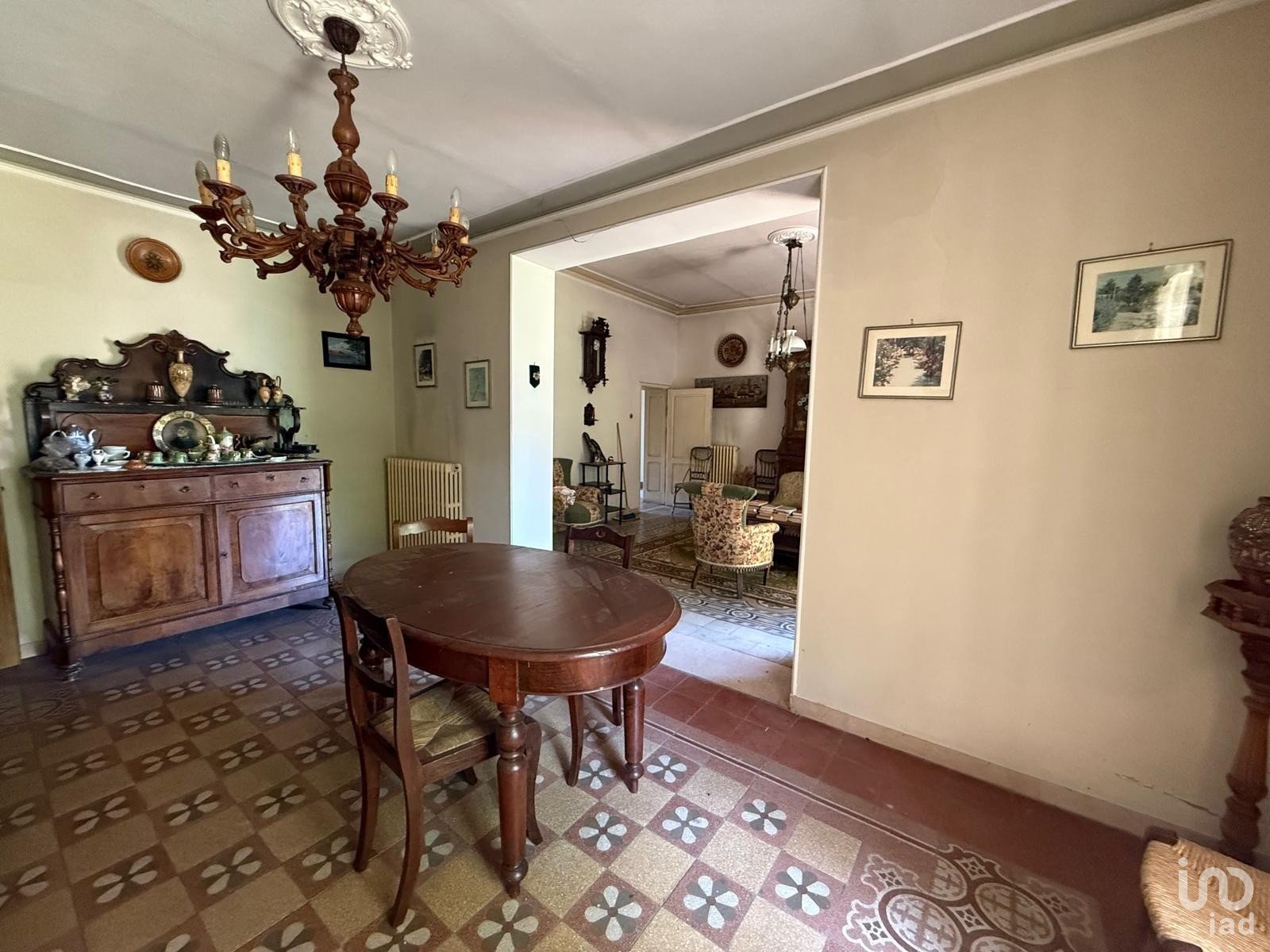 La unità al primo piano è la più ampia e si distingue per l’eleganza degli ambienti, i soffitti alti e i dettagli architettonici tipici dell’epoca, come i pavimenti originali in cotto. Attualmente si presenta in condizioni da rimodernare e necessita di alcuni interventi di ristrutturazione che ne valorizzerebbero appieno lo stile e il fascino storico.