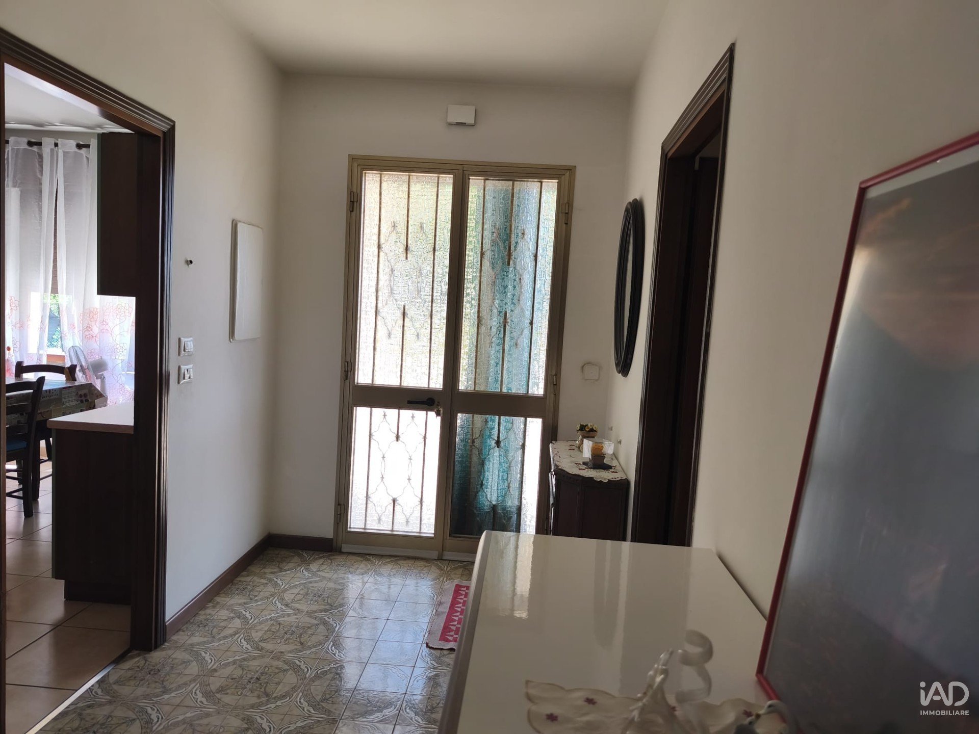 L’ingresso si apre su un ampio porticato coperto, perfetto per rilassarsi o accogliere gli ospiti. All’interno troviamo un comodo corridoio che distribuisce gli spazi del piano terra: una cucina abitabile già arredata, un luminoso salone, un’ulteriore grande stanza utilizzabile come studio o camera matrimoniale e due bagni. Direttamente collegato anche il garage di 21 mq, pratico e funzionale.