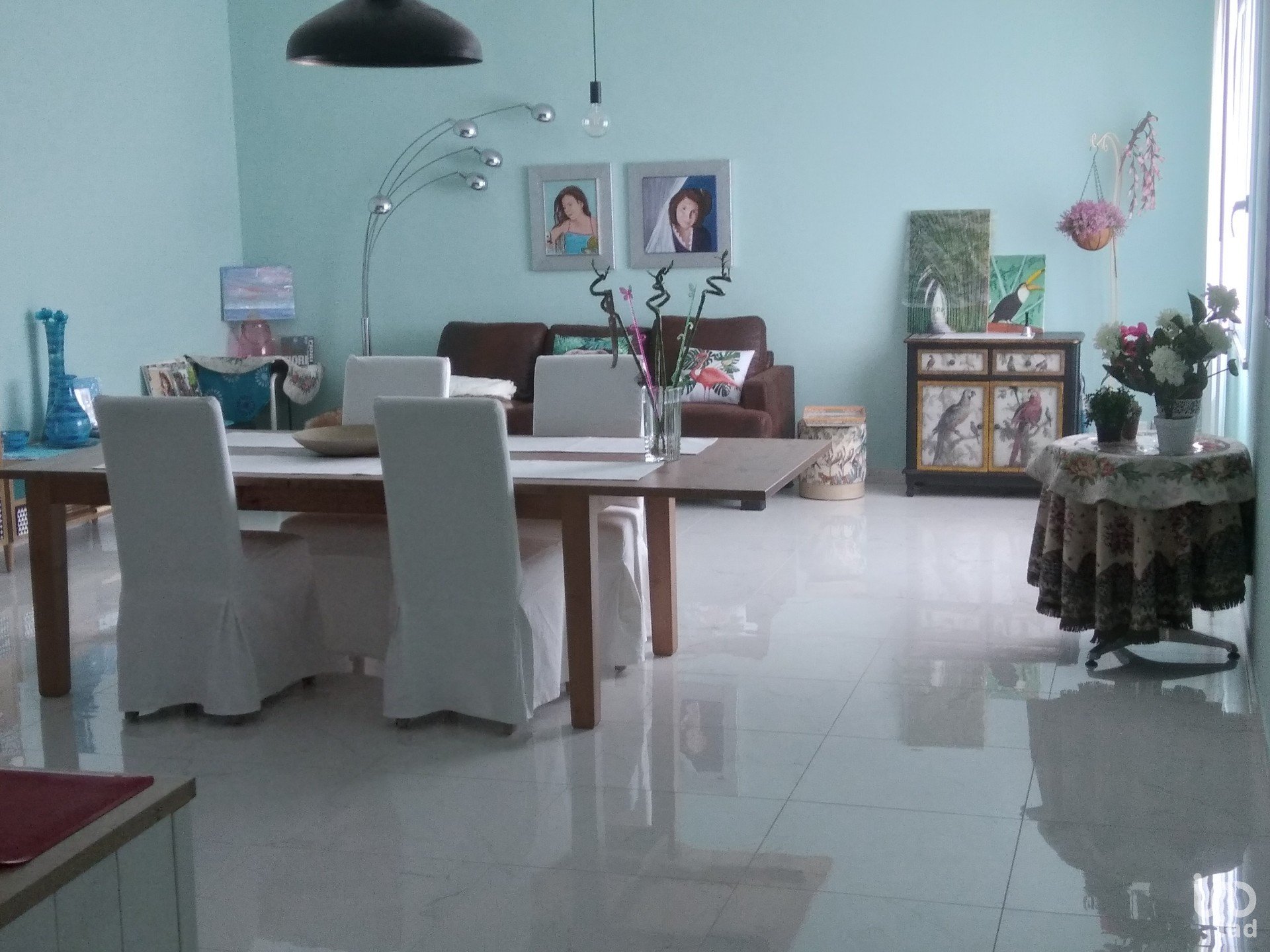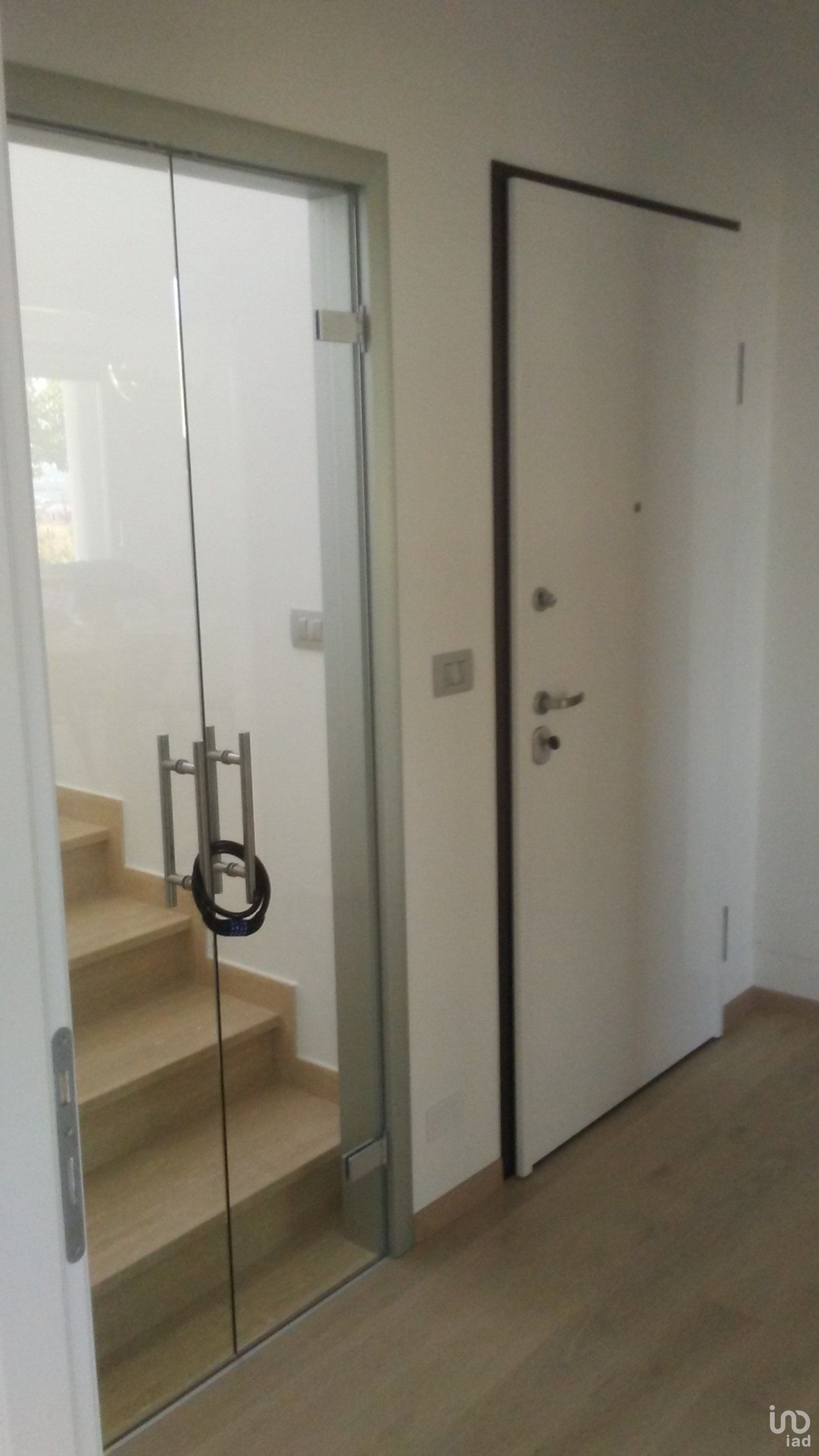 - da una scala in marmo di 5 gradini, raggiungiamo l'appartamento da un disimpegno,2 camere da letto,1bagno (doccia),1 soggiorno con angolo cottura