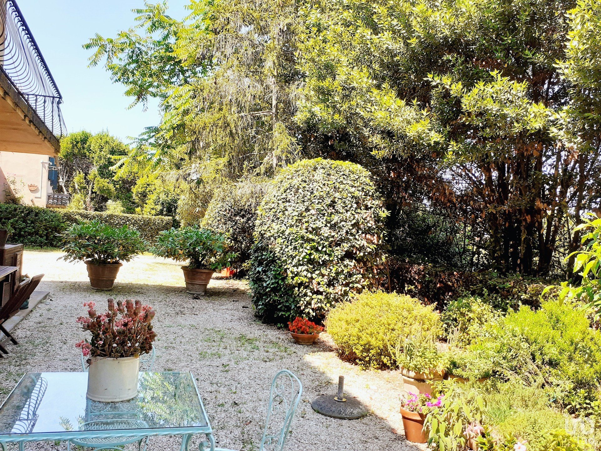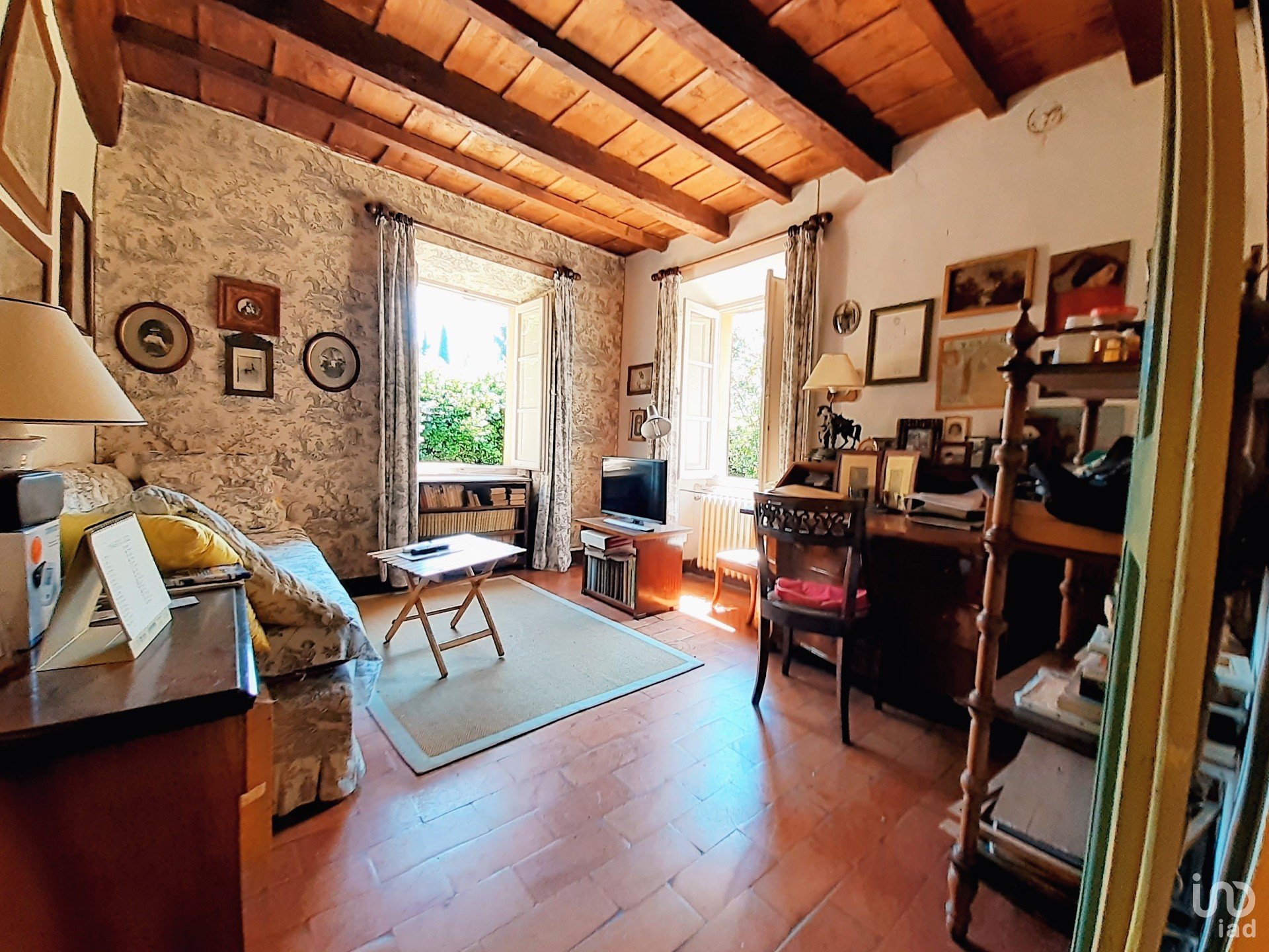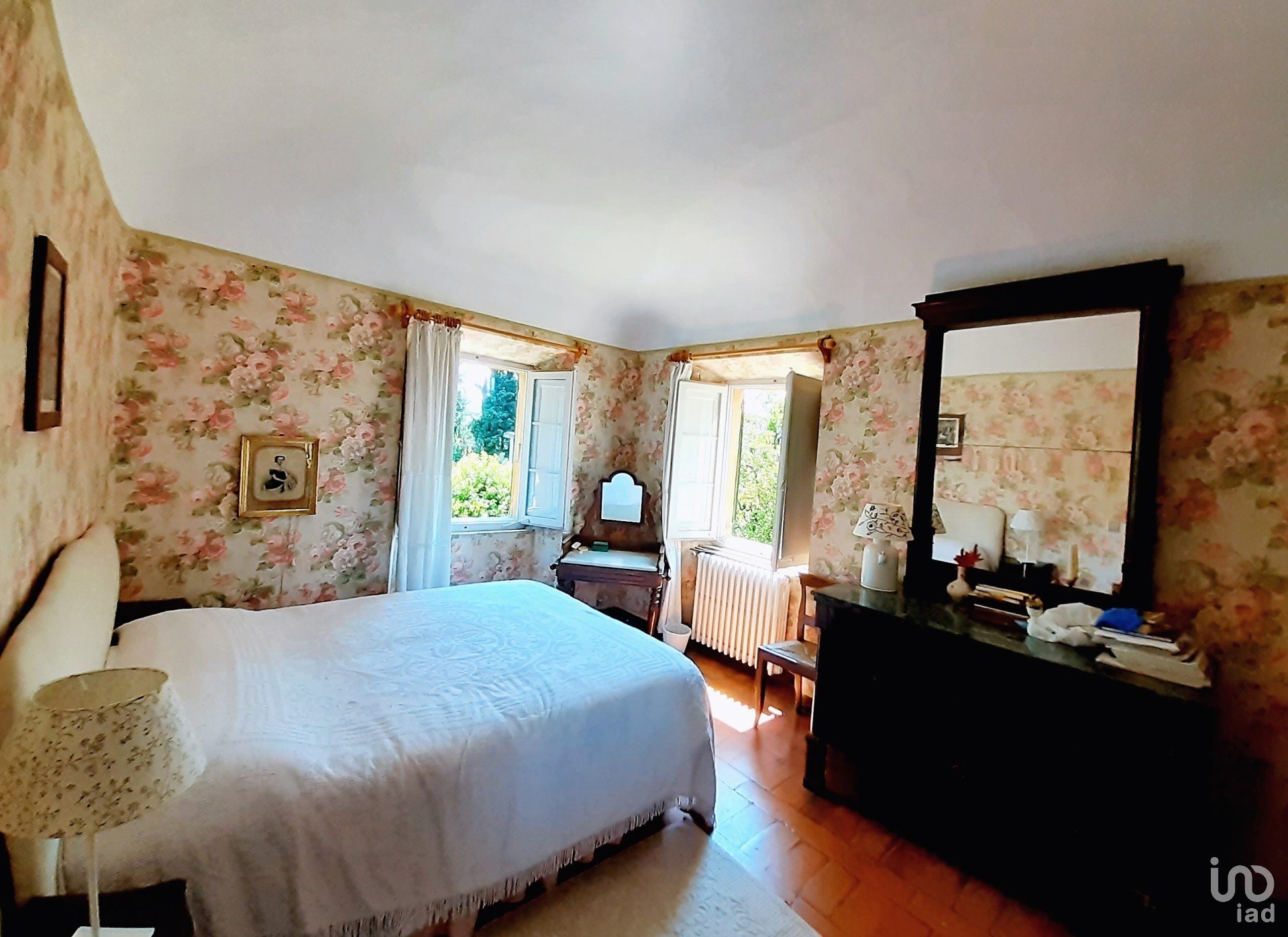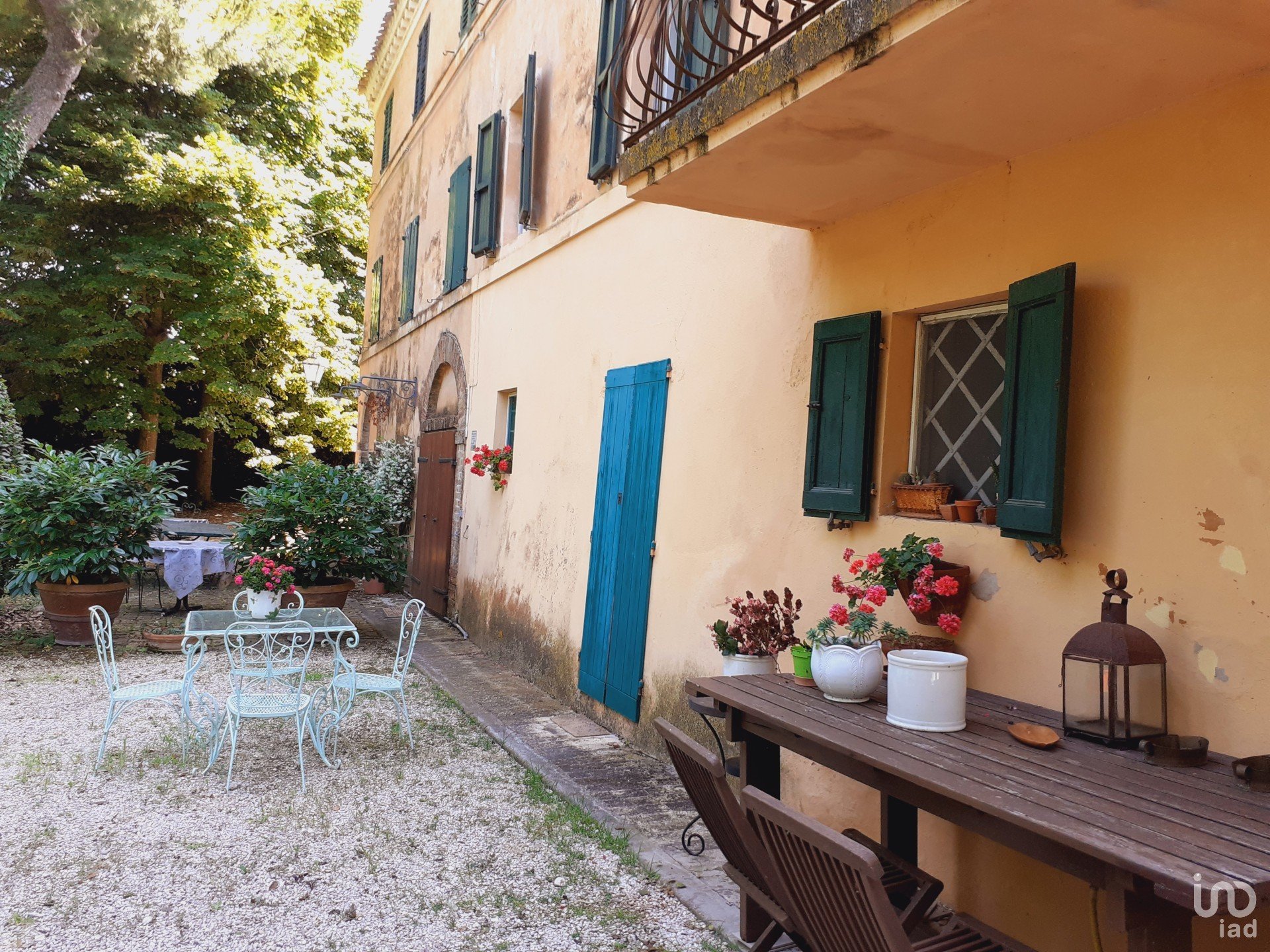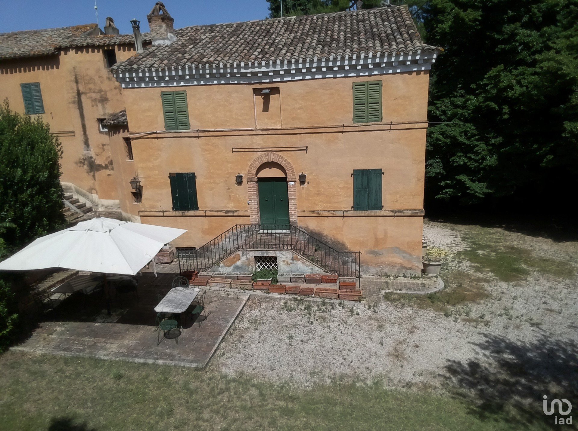 Oltre alla villa, l'immobile ha una corte di circa 2.500 mq, con alberi secolari, e terreni agricoli per un totale di 3.500 mq.