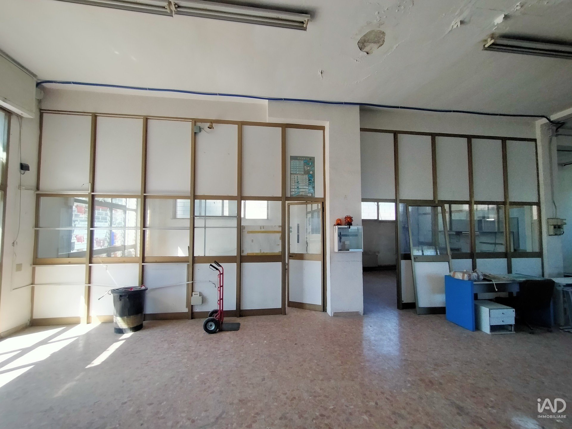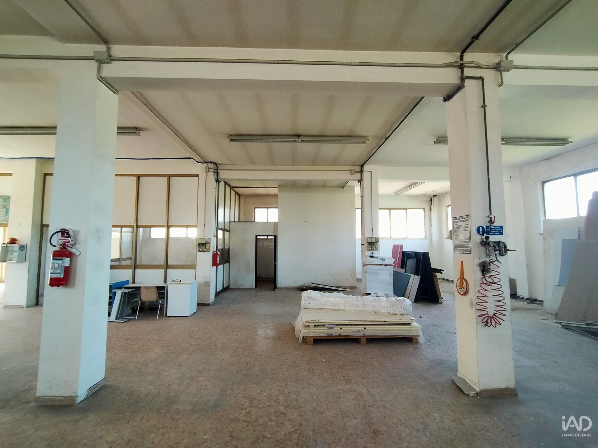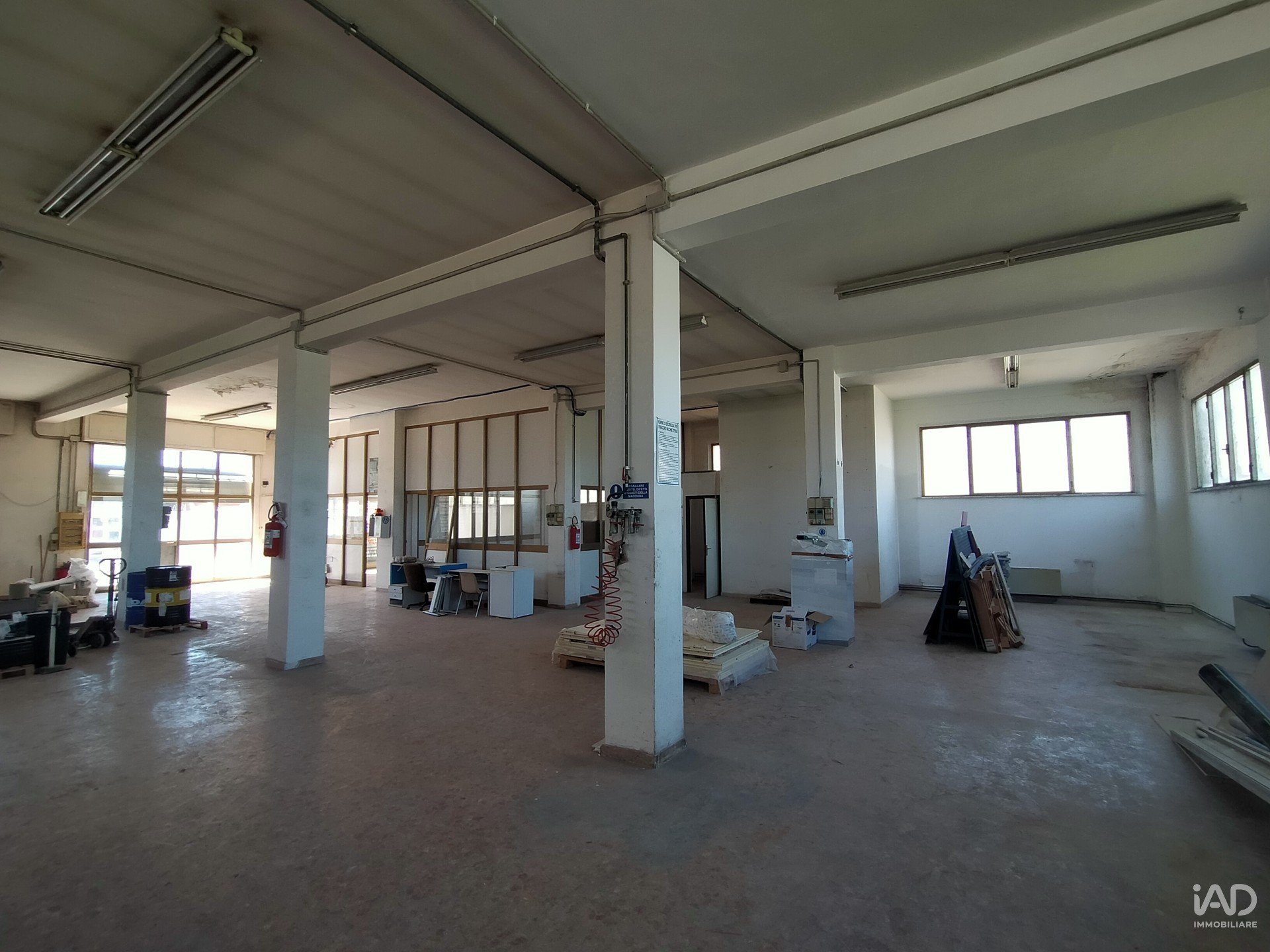 La struttura in cemento armato, edificata nei primi anni '80, ha internamente una pilastratura regolare che consente un'ottima organizzazione degli spazi, altezza interna di 4,20 metri circa, ed ampie finestrature laterali che assicurano una buona illuminazione naturale.