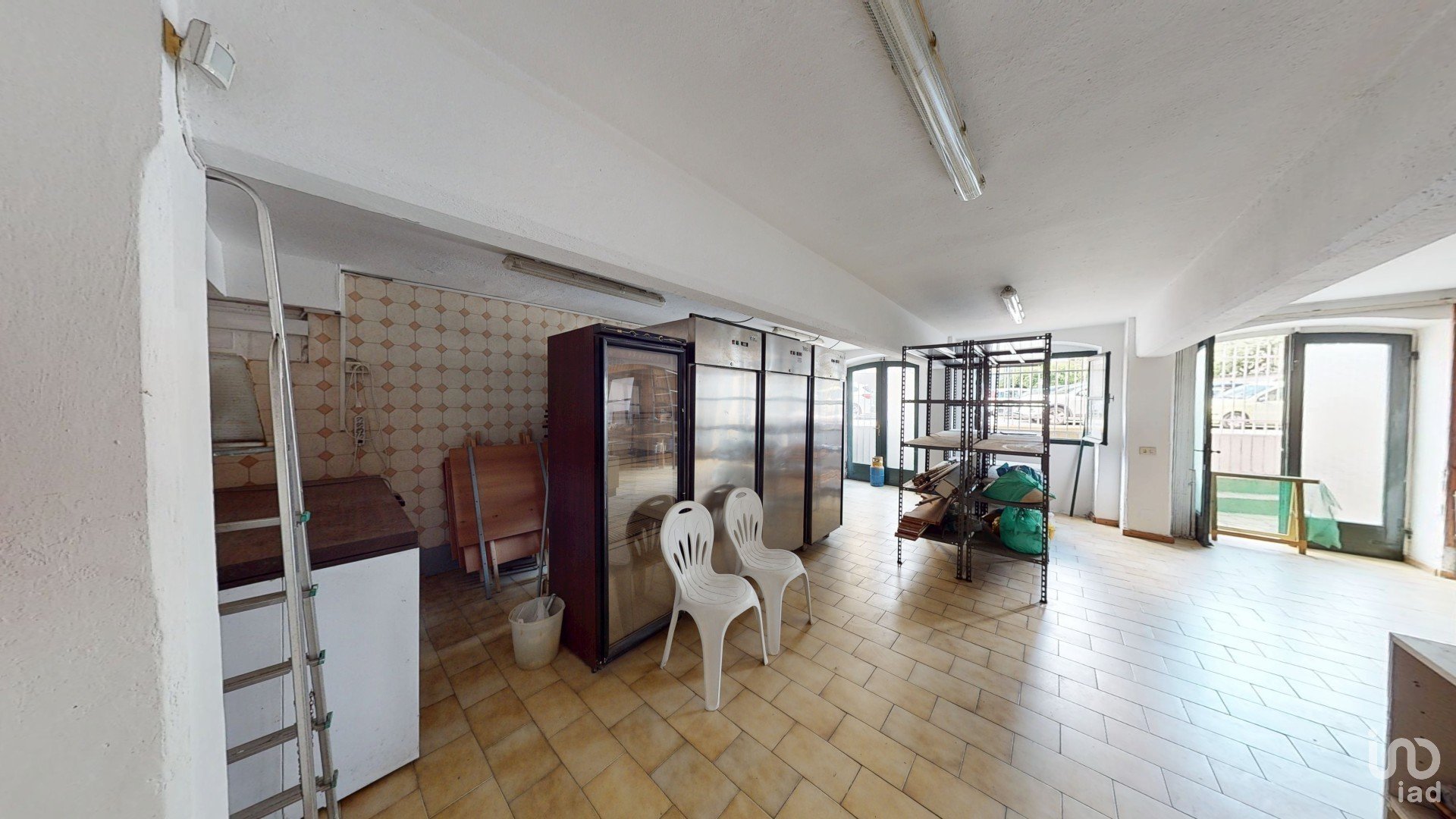 Attraverso una scala interna comoda e funzionale, si accede a un secondo ambiente di circa 50 mq, attualmente adibito a magazzino, completo di ulteriore bagno e spazi versatili utili per stoccaggio o eventuali ampliamenti dell’attività.