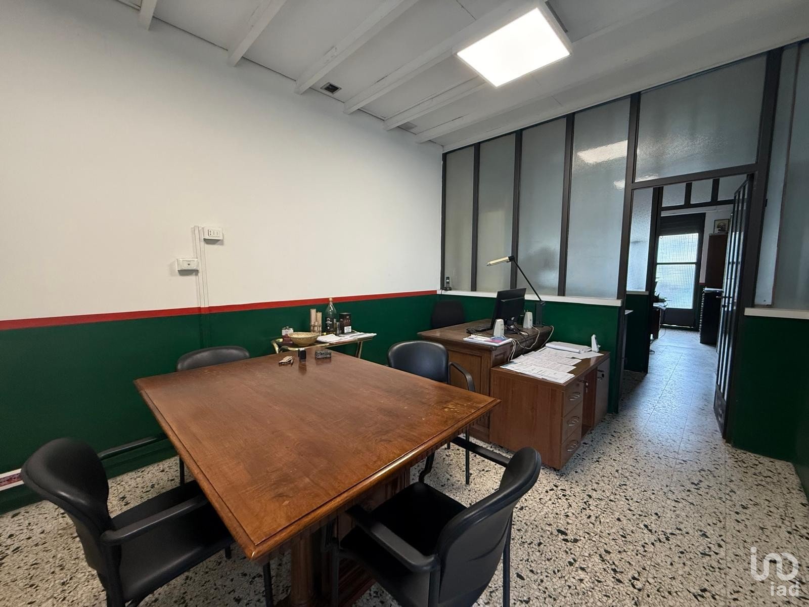 L’immobile dispone di una vetrina luce su strada e si compone attualmente di quattro ampi ambienti uso ufficio, tutti finestrati e ben illuminati, oltre a un pratico soppalco ideale come magazzino o area di rimessaggio. Completa la proprietà un servizio igienico.