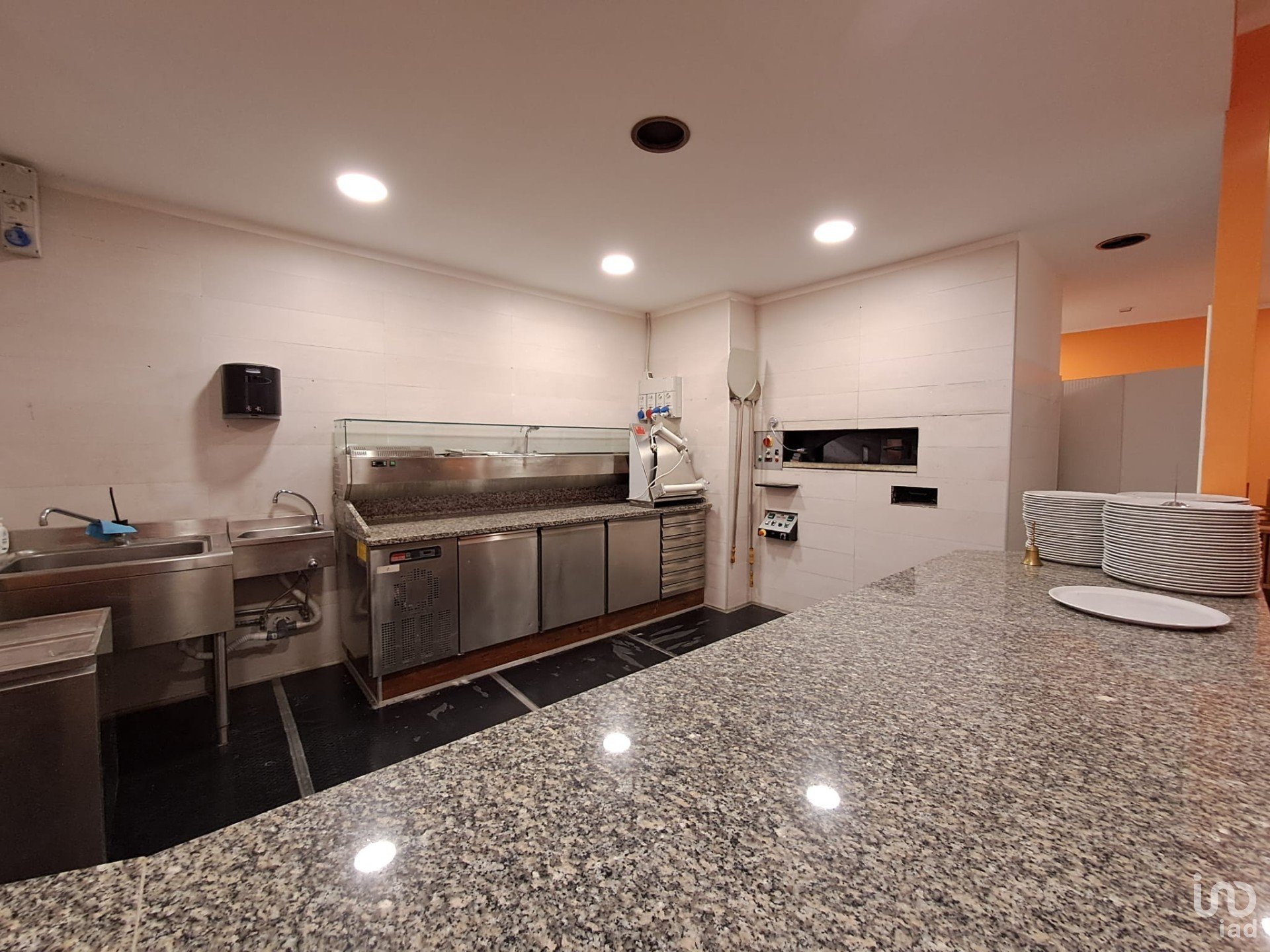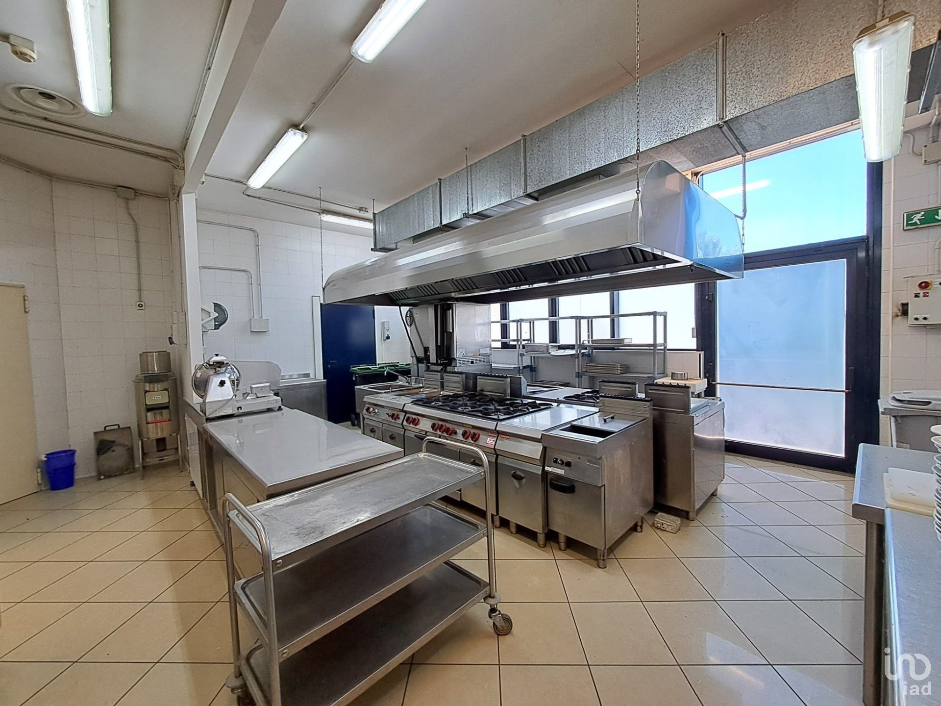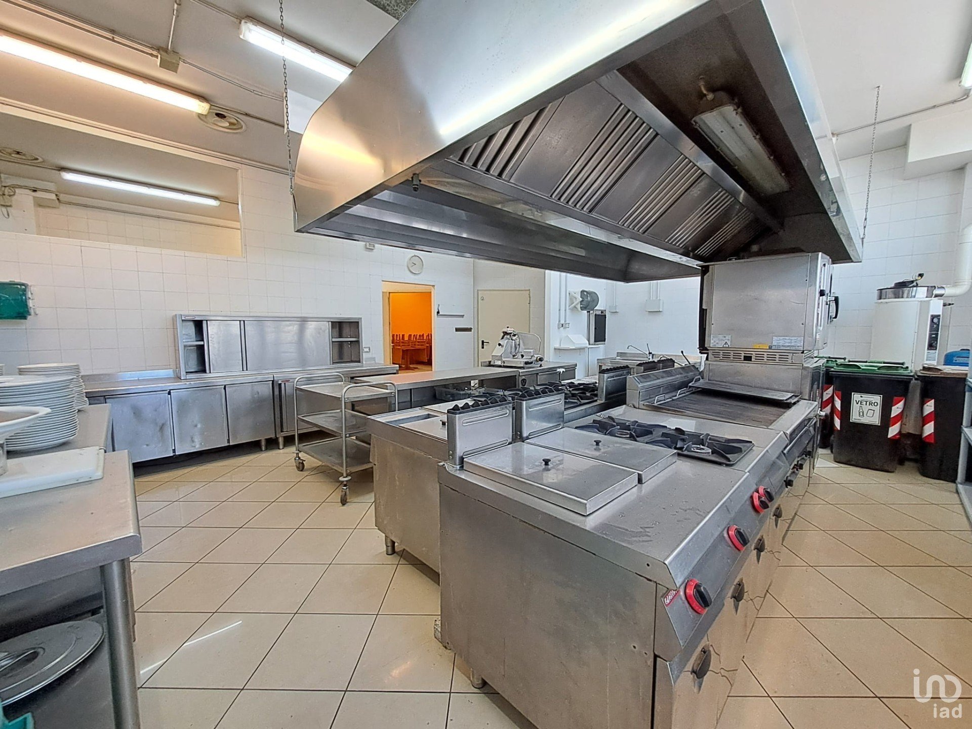 La cucina professionale, articolata in più spazi funzionali, è dotata di attrezzatura completa (forniremo la lista completa agli interessati) in breve: cucina a 6 fuochi con forno, friggitrice, grill, vaporiera, celle positive e negative, impastatrici, zona lavaggio e locali riservati al personale con spogliatoi e servizi dedicati.