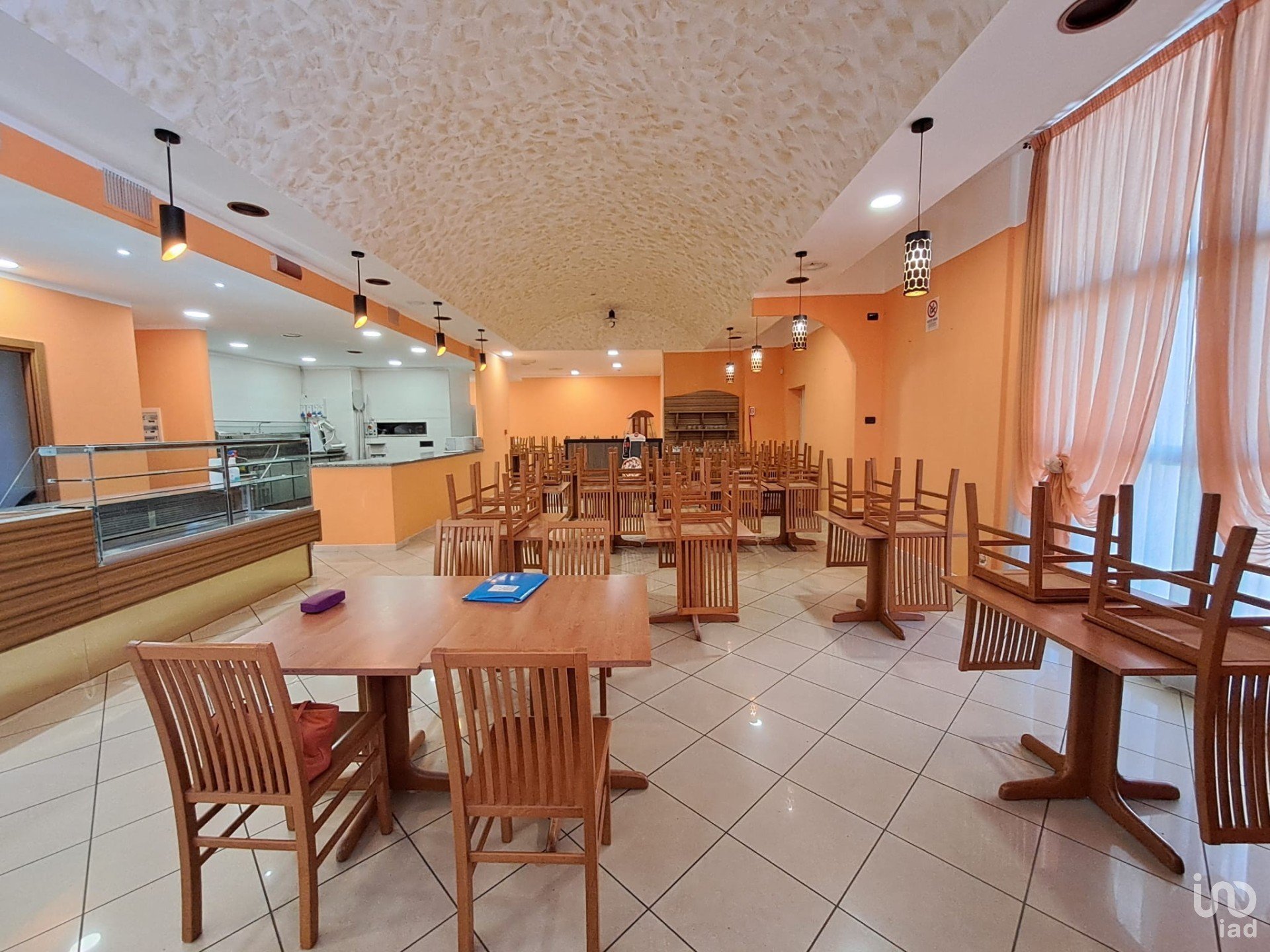 All’interno troviamo un’ampia e luminosa sala open space con circa 90 coperti, fronte bar e zona pizzeria con forno ibrido a gas/legna. L’area è completata da servizi igienici a norma, accessibili anche a persone con disabilità.