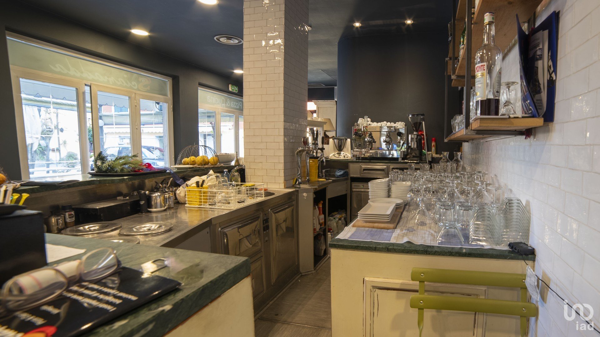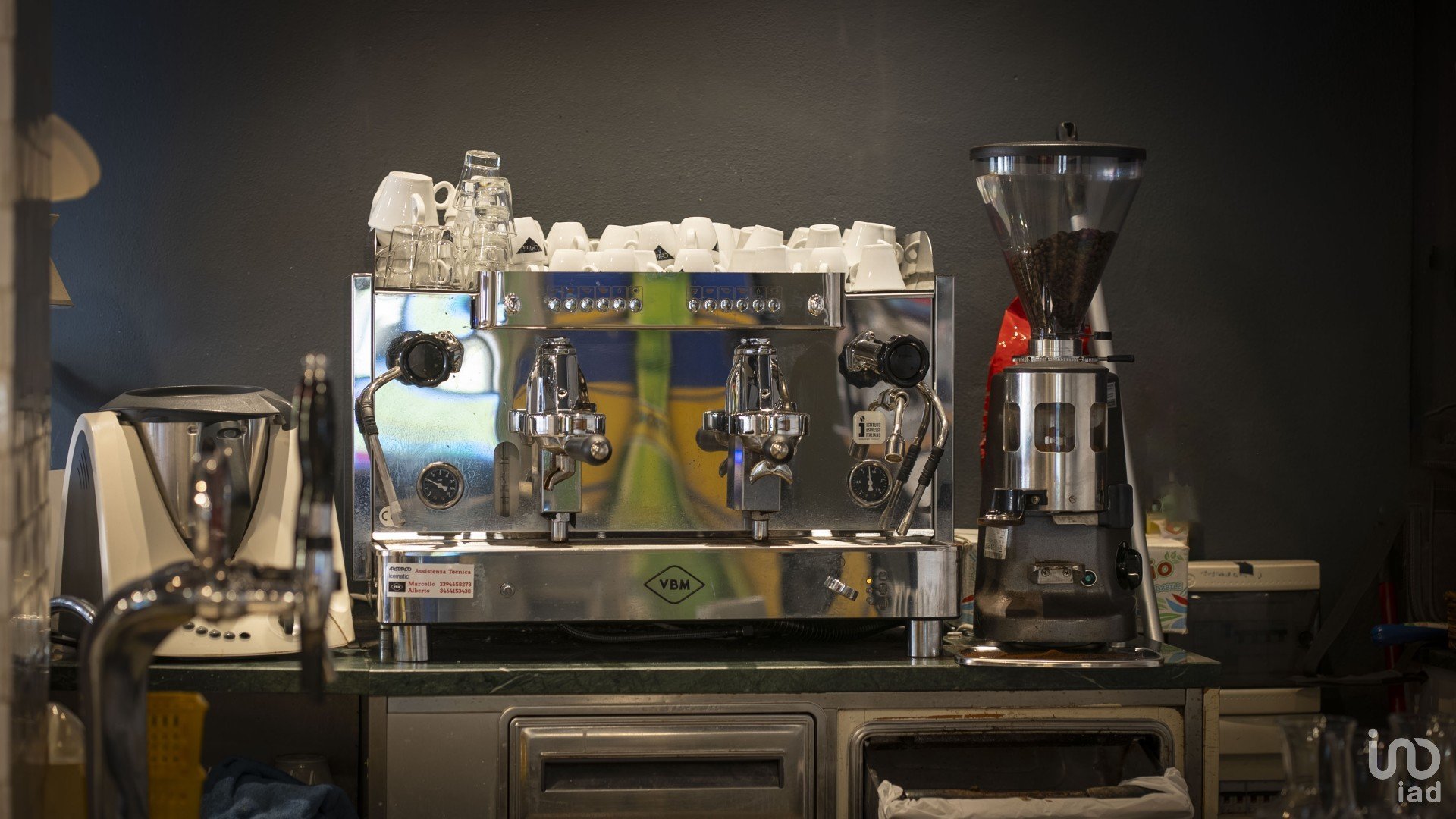 BAR: attrezzato con pozzetti per i gelati, macchina del caffè di proprietà Faema, banchi frigo per il beverage, lava tazzine, fabbricatore del ghiaccio, elettrodomestici vari.