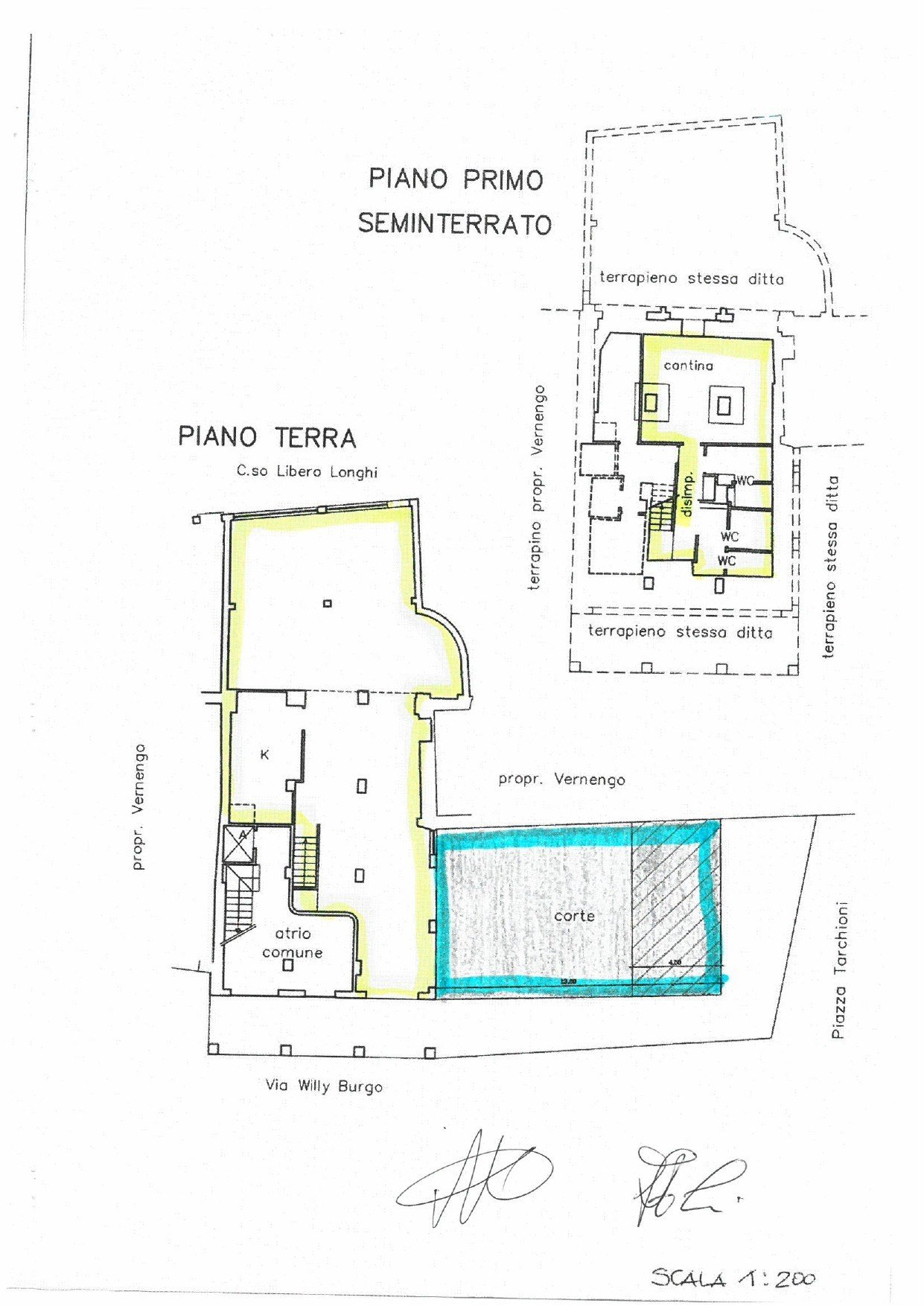 Lo spazio esterno è di proprietà mq 105, quindi privo di pagamento suolo pubblico