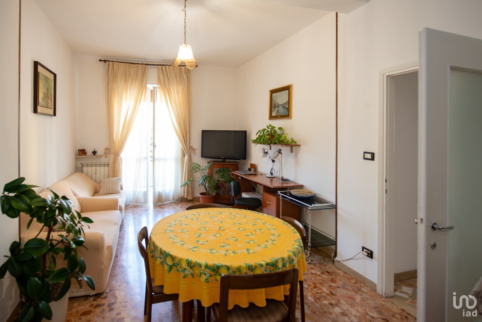 La disposizione interna regala spazi ariosi e ben proporzionati: il soggiorno si apre su un balcone che porta luce naturale durante il giorno, la cucina dispone di un comodo terrazzino interno mentre le due camere matrimoniali e il bagno con balcone rendono l’abitazione funzionale e accogliente.