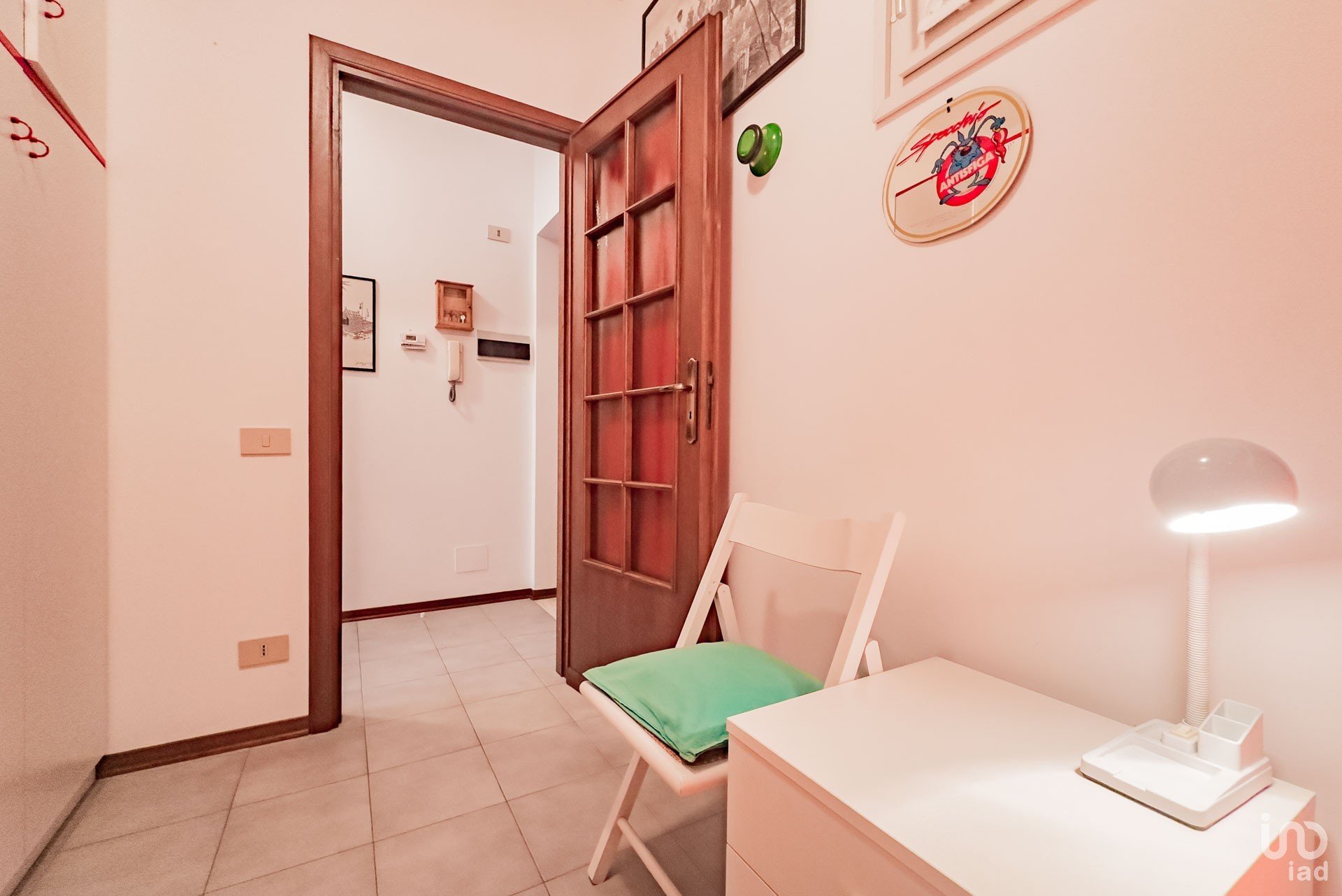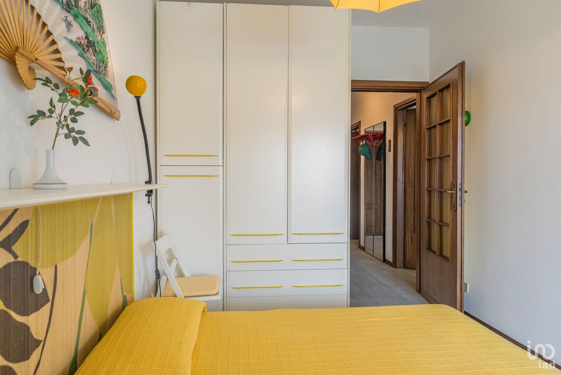 L’ingresso si apre su un corridoio funzionale, con il bagno finestrato e dotato di doccia sulla destra, e una camera singola sulla sinistra. Proseguendo troviamo una spaziosa camera matrimoniale e un accogliente soggiorno con angolo cottura.