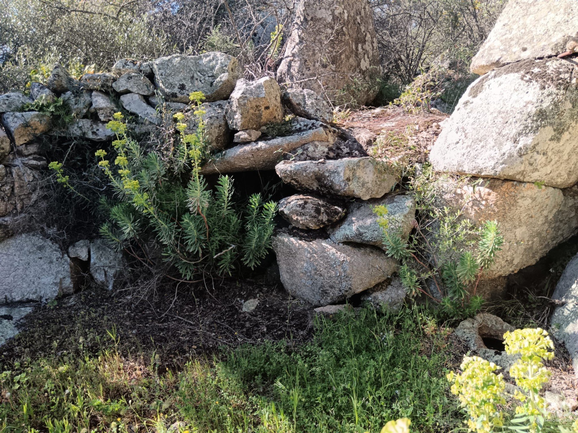 La proprietà comprende uno stazzo da ristrutturare di circa 145 m², una stalla indipendente di 35 m² e un terreno di 73.188 m², completamente circondato da macchia mediterranea.